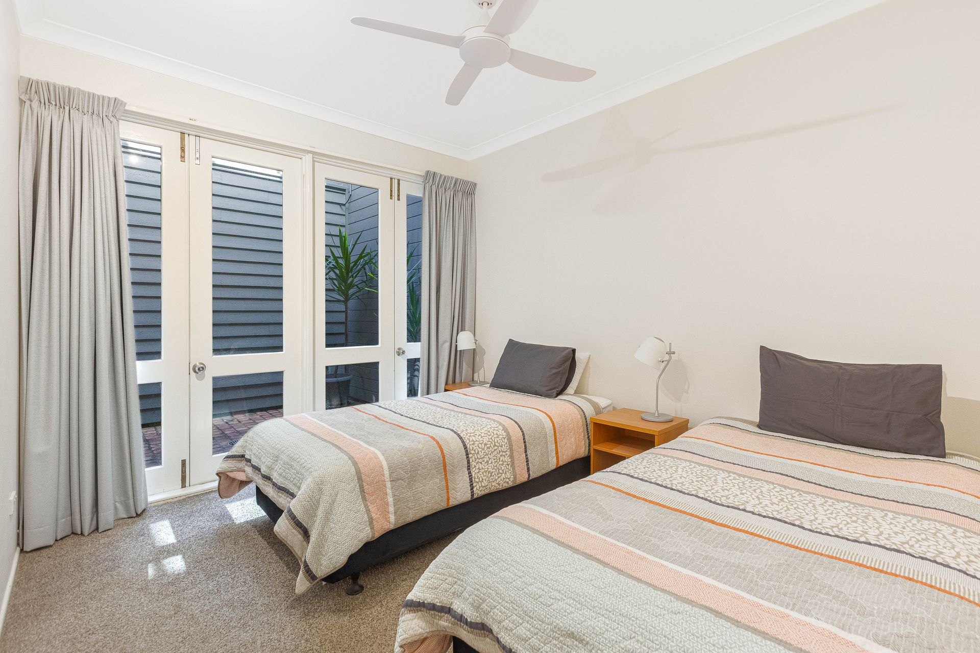 208 Marine Parade is split over 2 levels with the lower level featuring 3 bedrooms - two with queen beds and the third bedroom with 2 king single beds, all with ceiling fans.