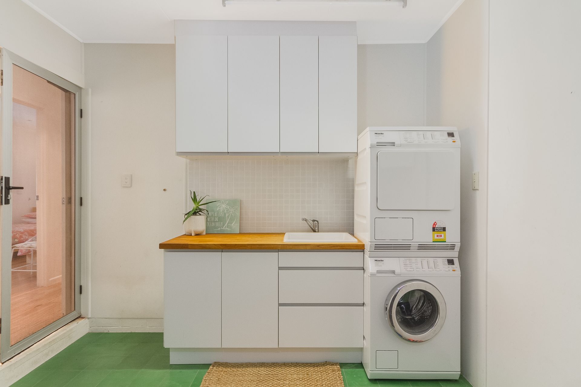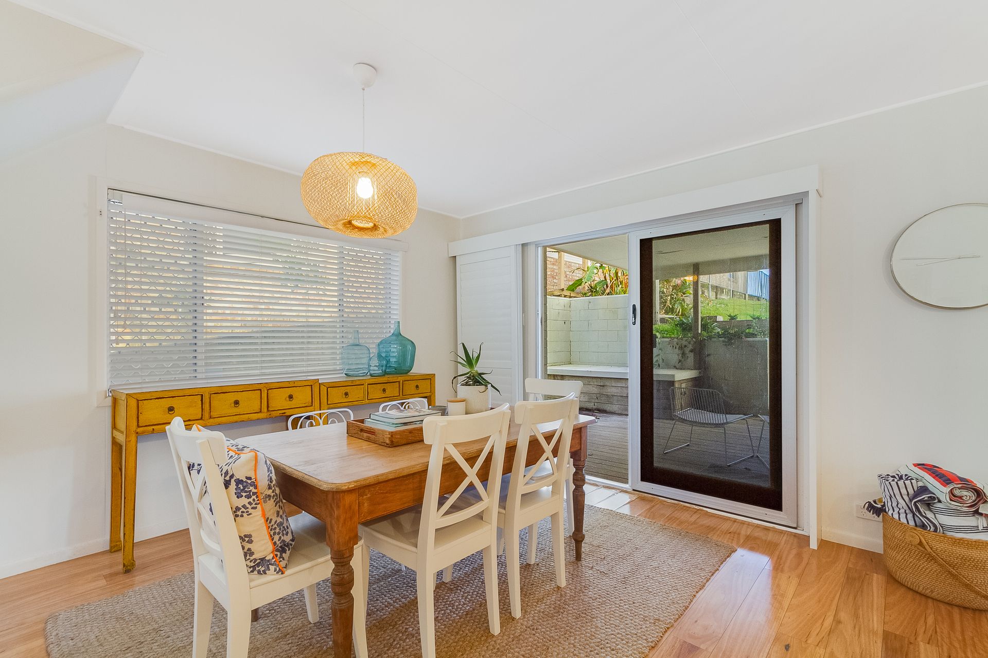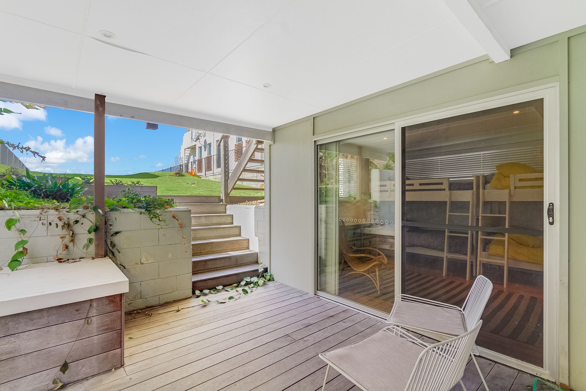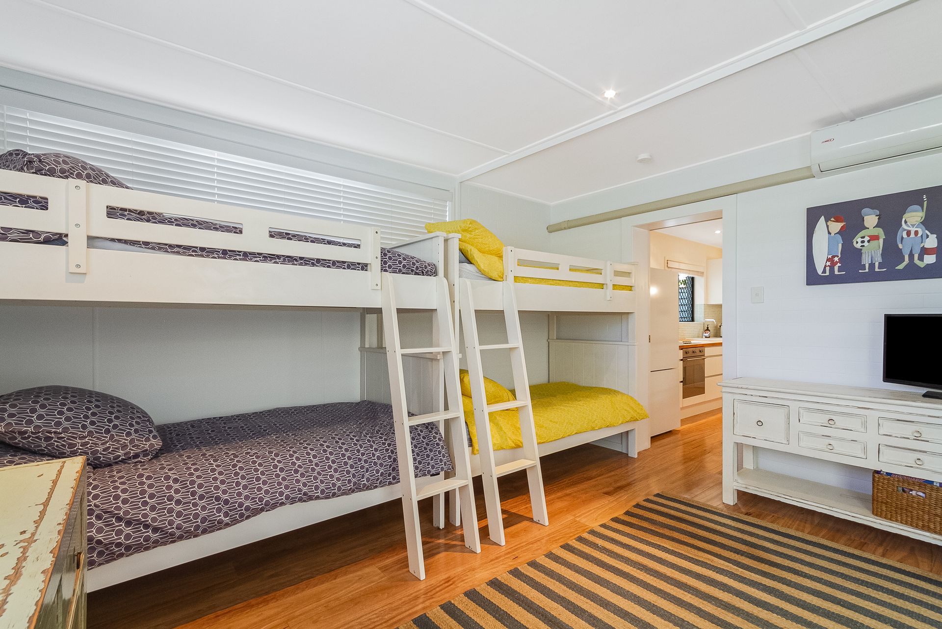 The third bedroom offers 2 bunk beds and opens onto the covered outdoor area with direct access to the fully fenced yard – perfect for kids who like to wake up early and play outside!