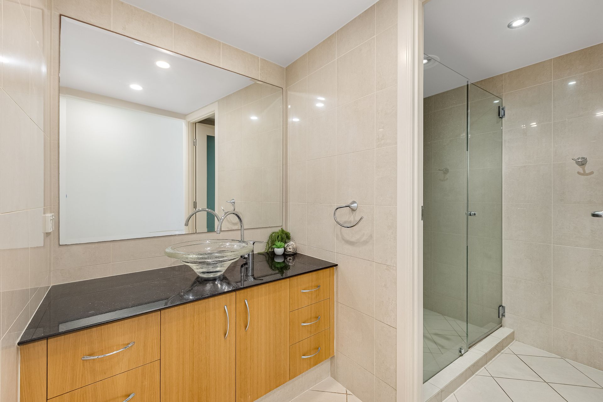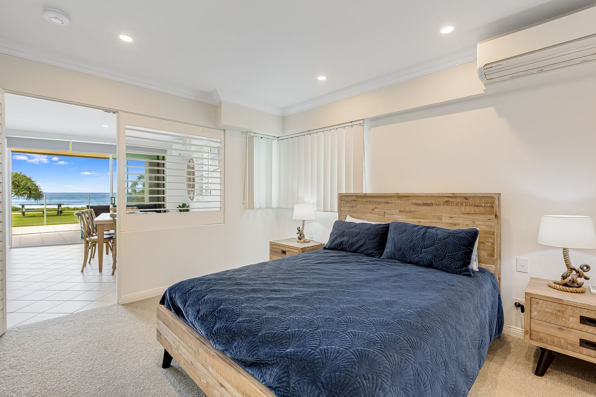 The apartment offers 2 bedrooms - master with queen bed, walk through robe and ensuite with indulgent spa bath. Open the plantation shutters to enjoy ocean views from the comfort of bed, or close it off for complete privacy.
