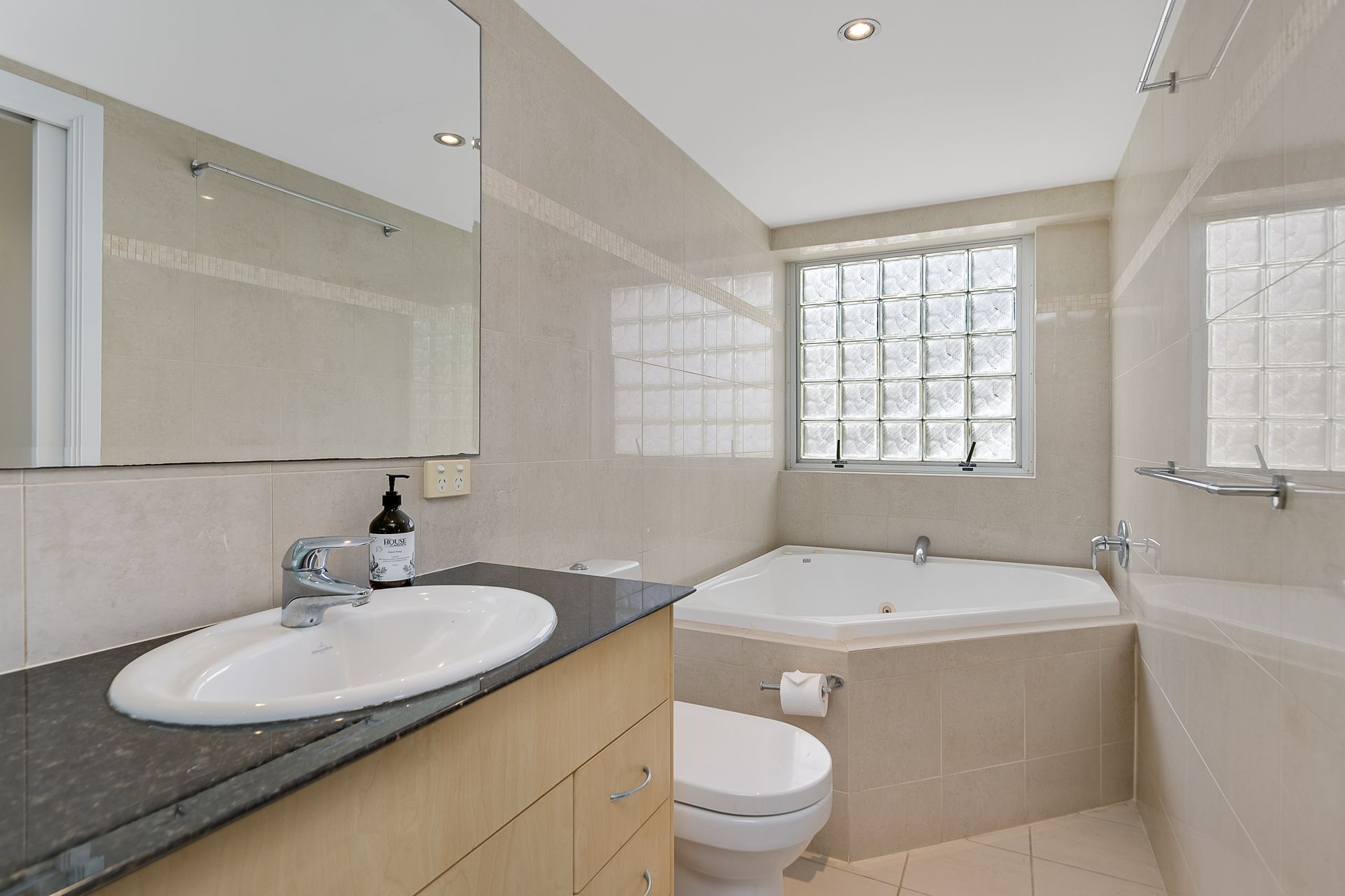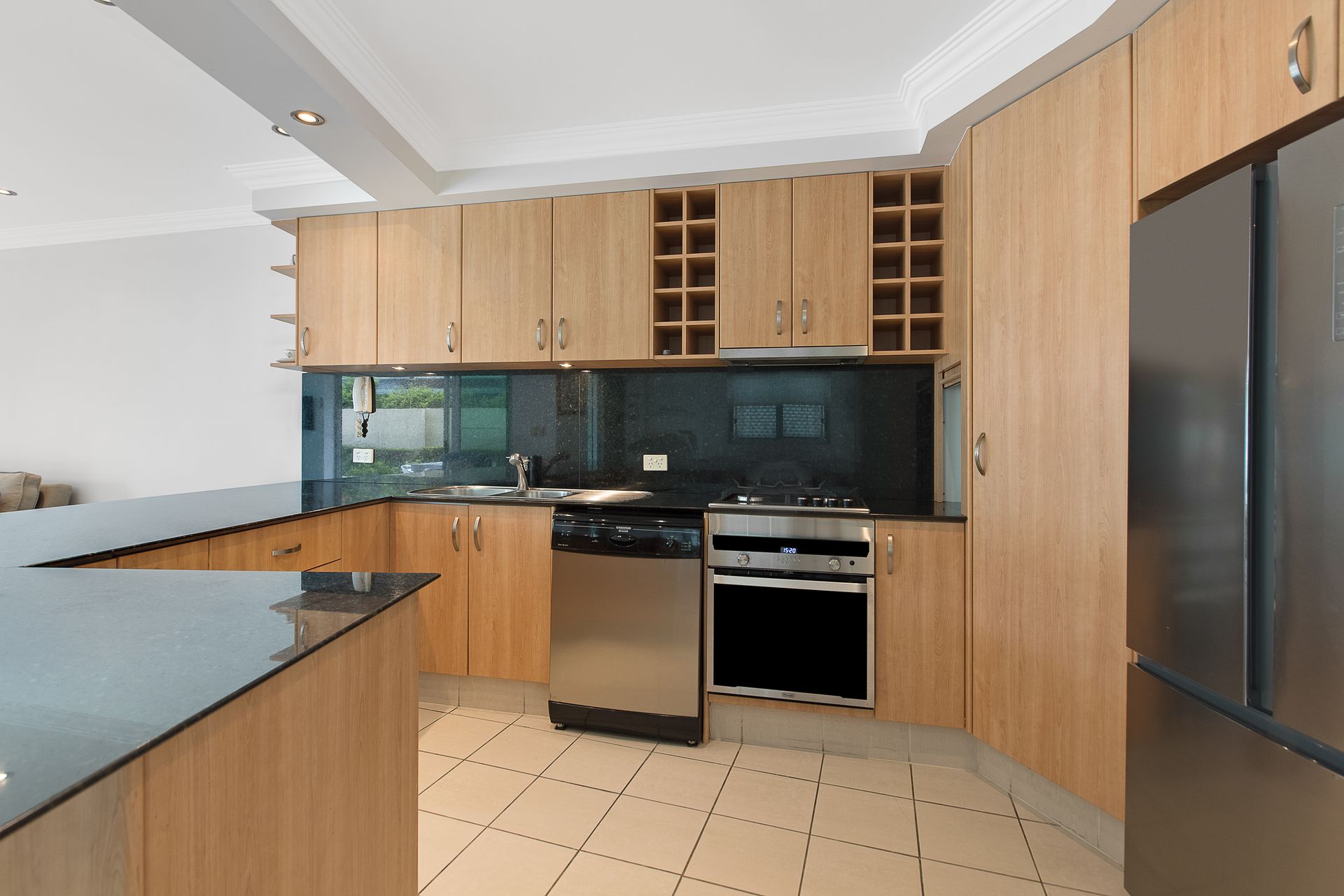 The kitchen is spacious and fully equipped with everything you need on holidays including large fridge /freezer, gas cooktop, dishwasher and plenty of bench and storage space.