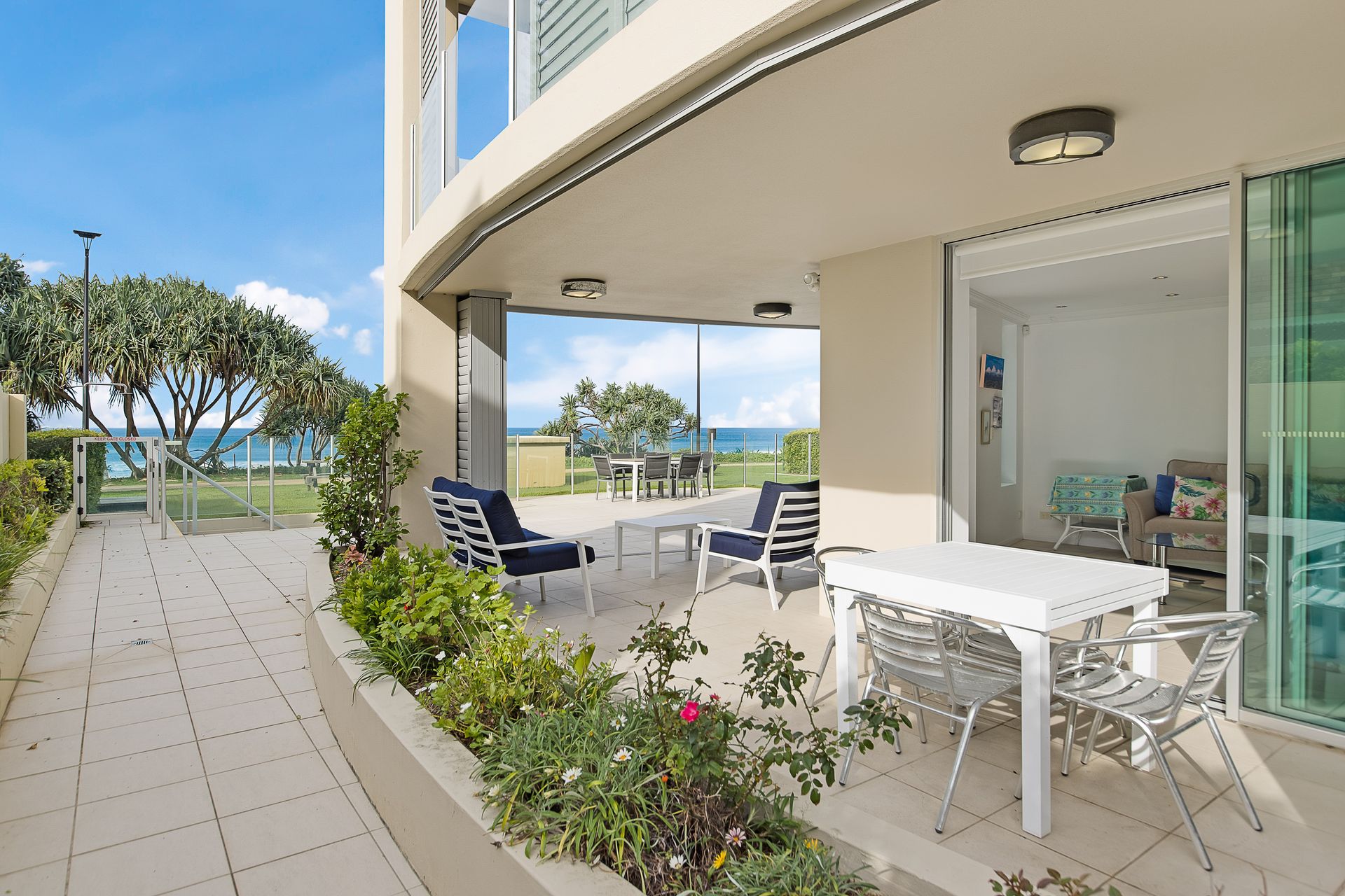 Enjoy stunning views across the spacious terrace and manicured lawns out to the Pacific Ocean. With direct beach access , this is perfect for guests looking for a special holiday experience.
