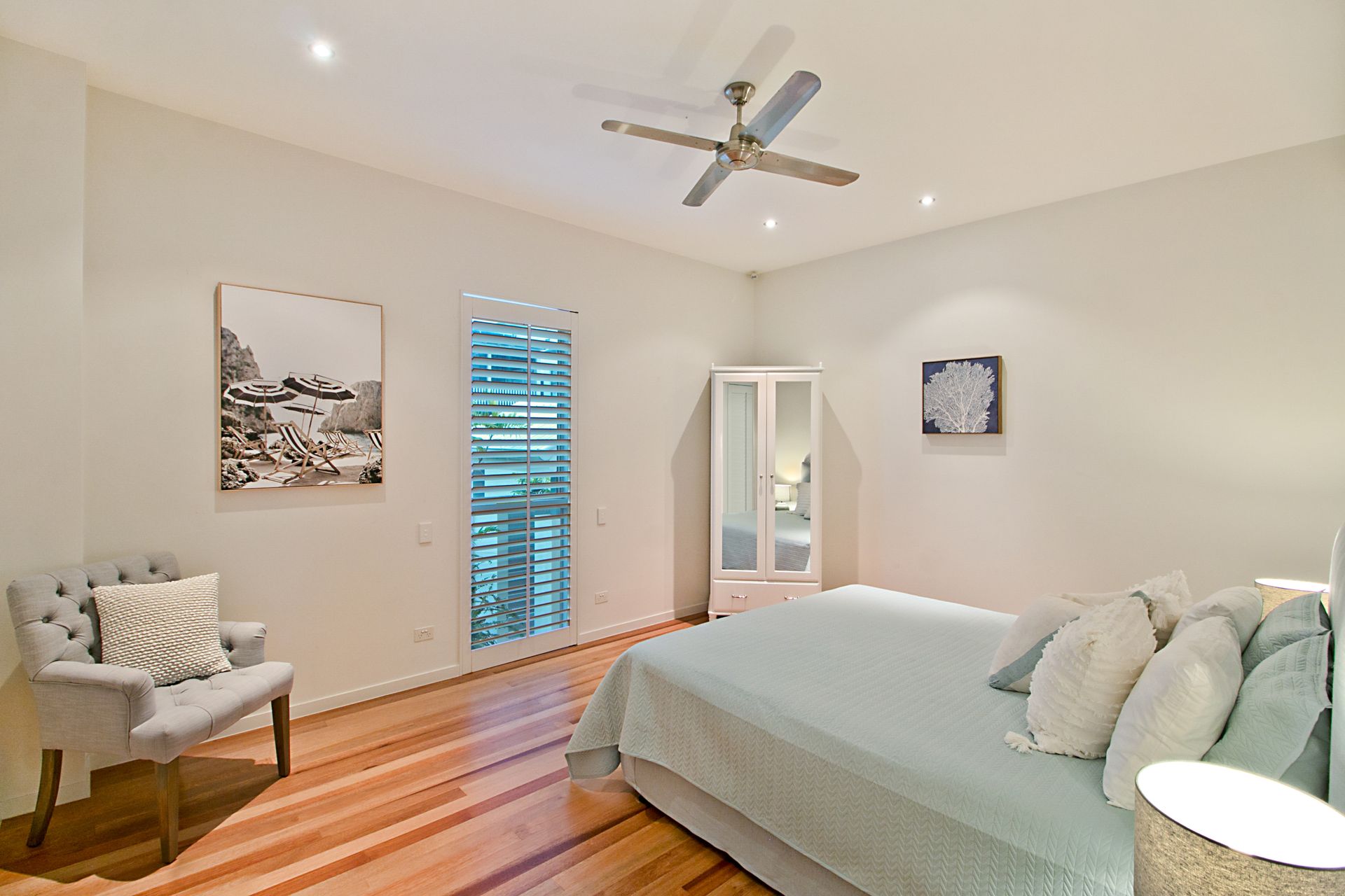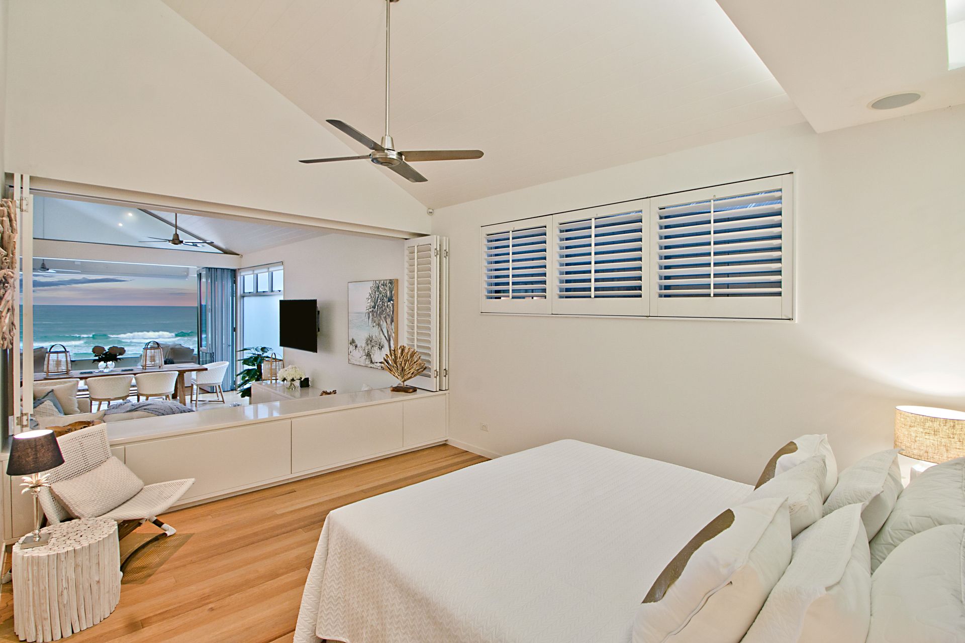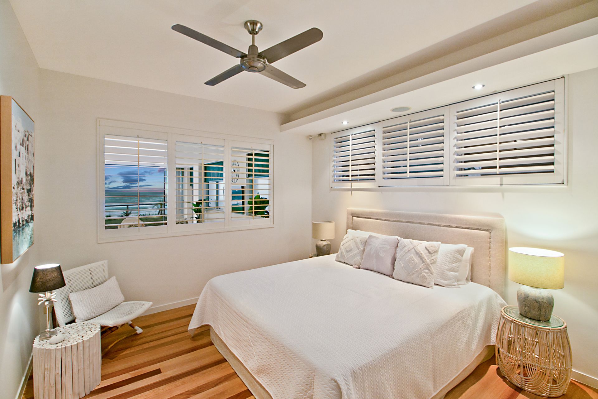 - Spacious master suite with luxurious king bed, featuring ocean views through the planation shutters, walk in robe and