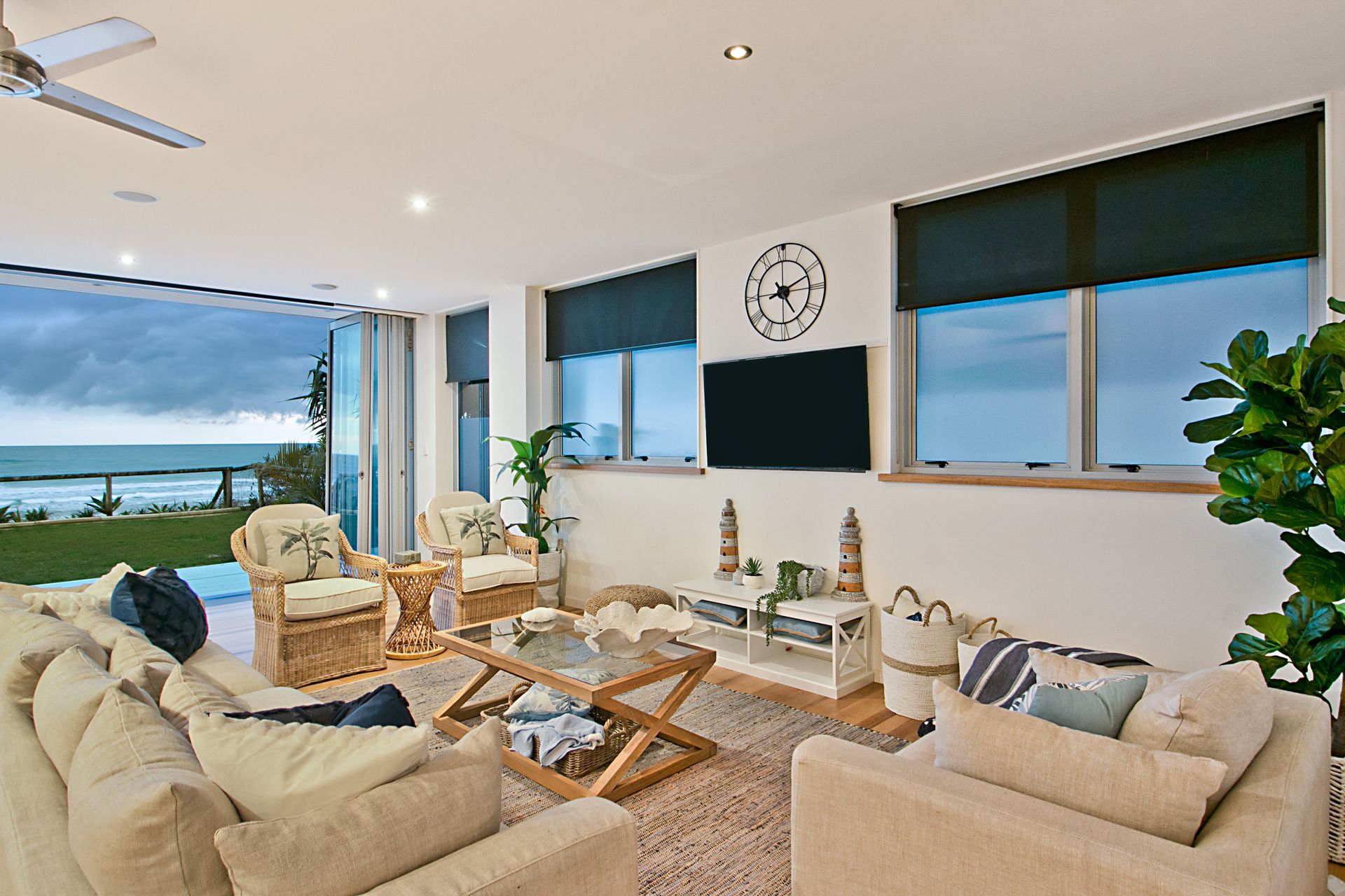 Beachfront Bliss is an exquisite holiday home located on the absolute beachfront at Palm Beach. This architecturally designed, beautifully furnished and styled home offers a truly one-of-a-kind holiday experience.