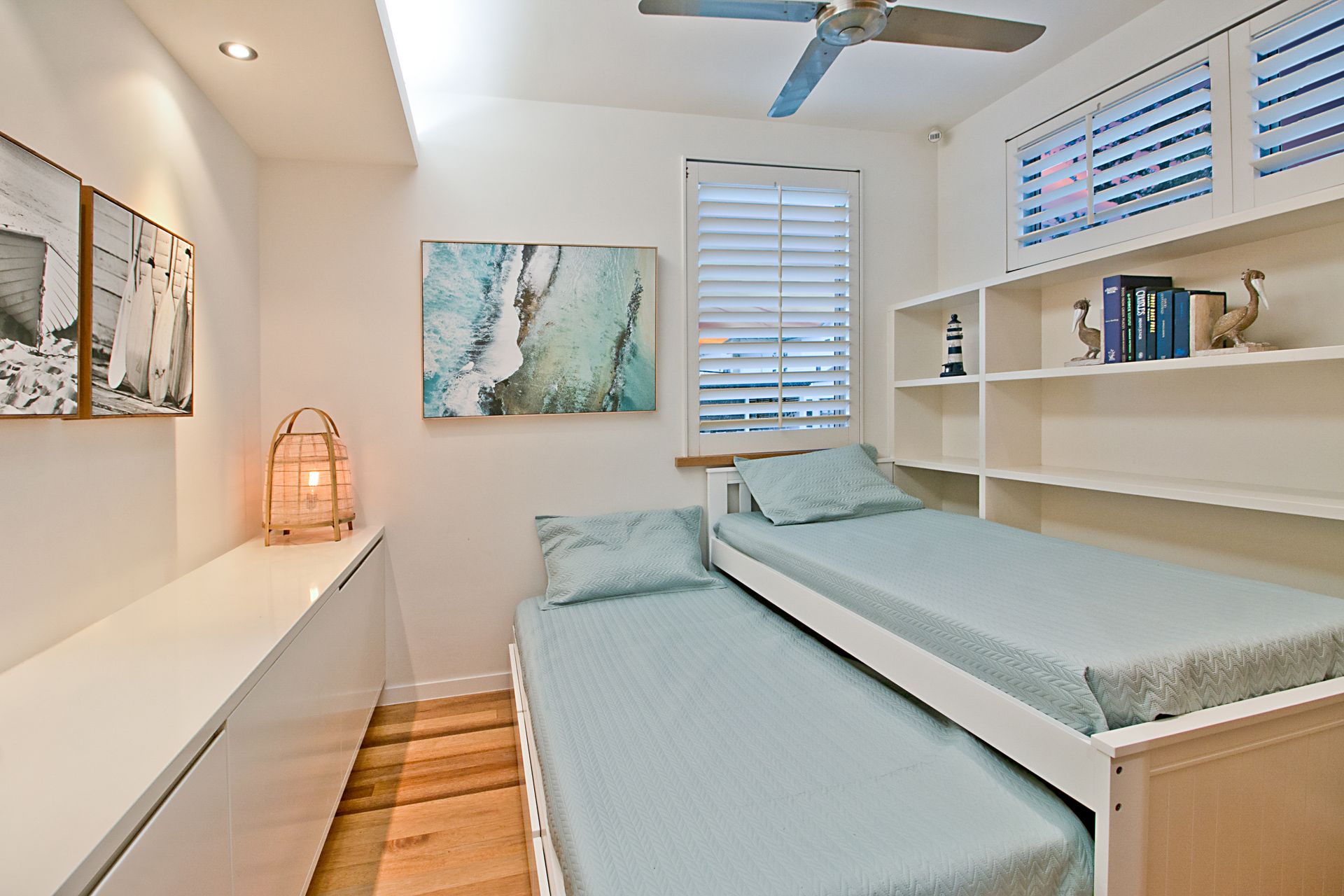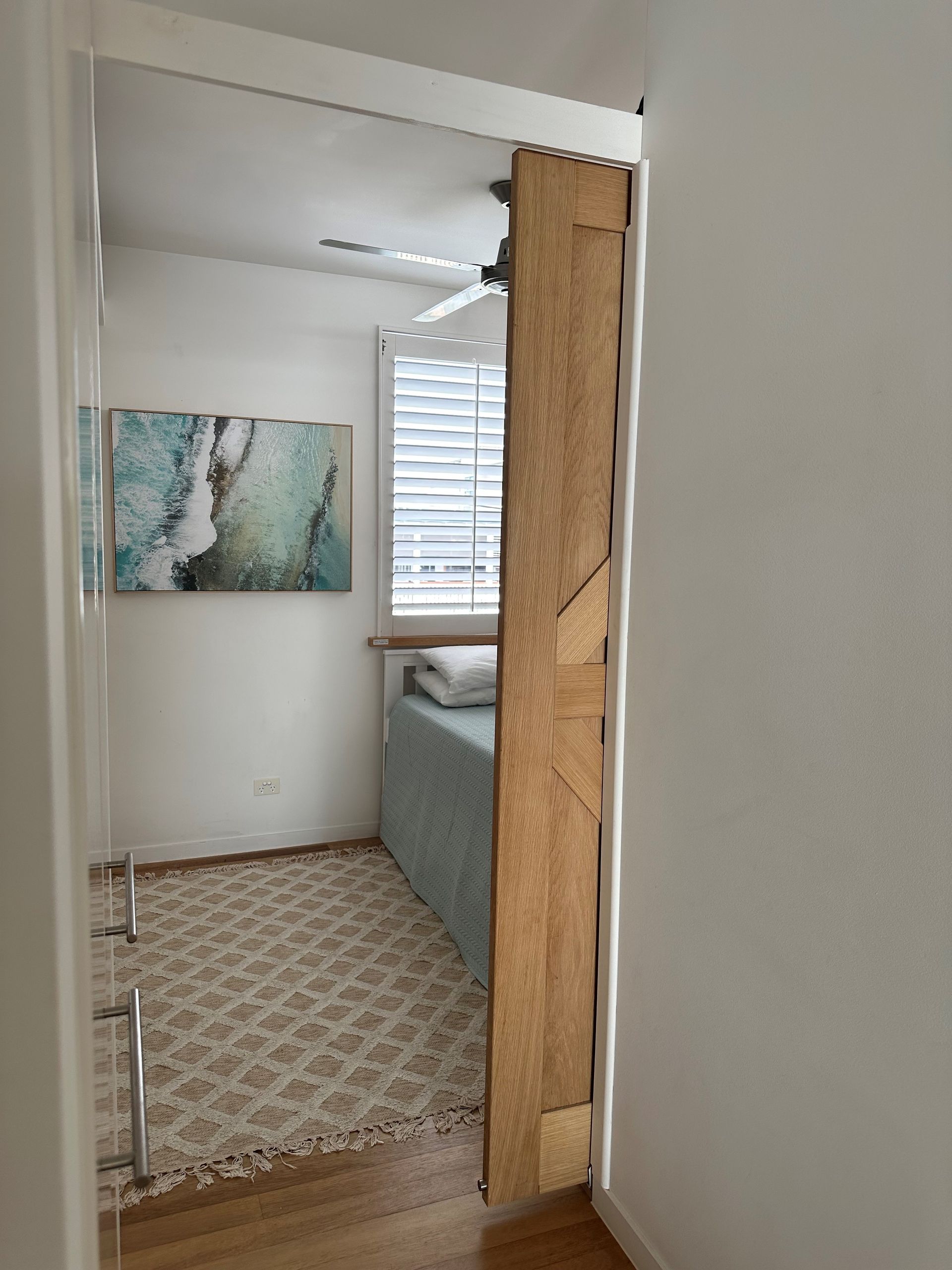 - Second bedroom with king single bed + trundle bed (barn sliding door has open gap at ceiling)