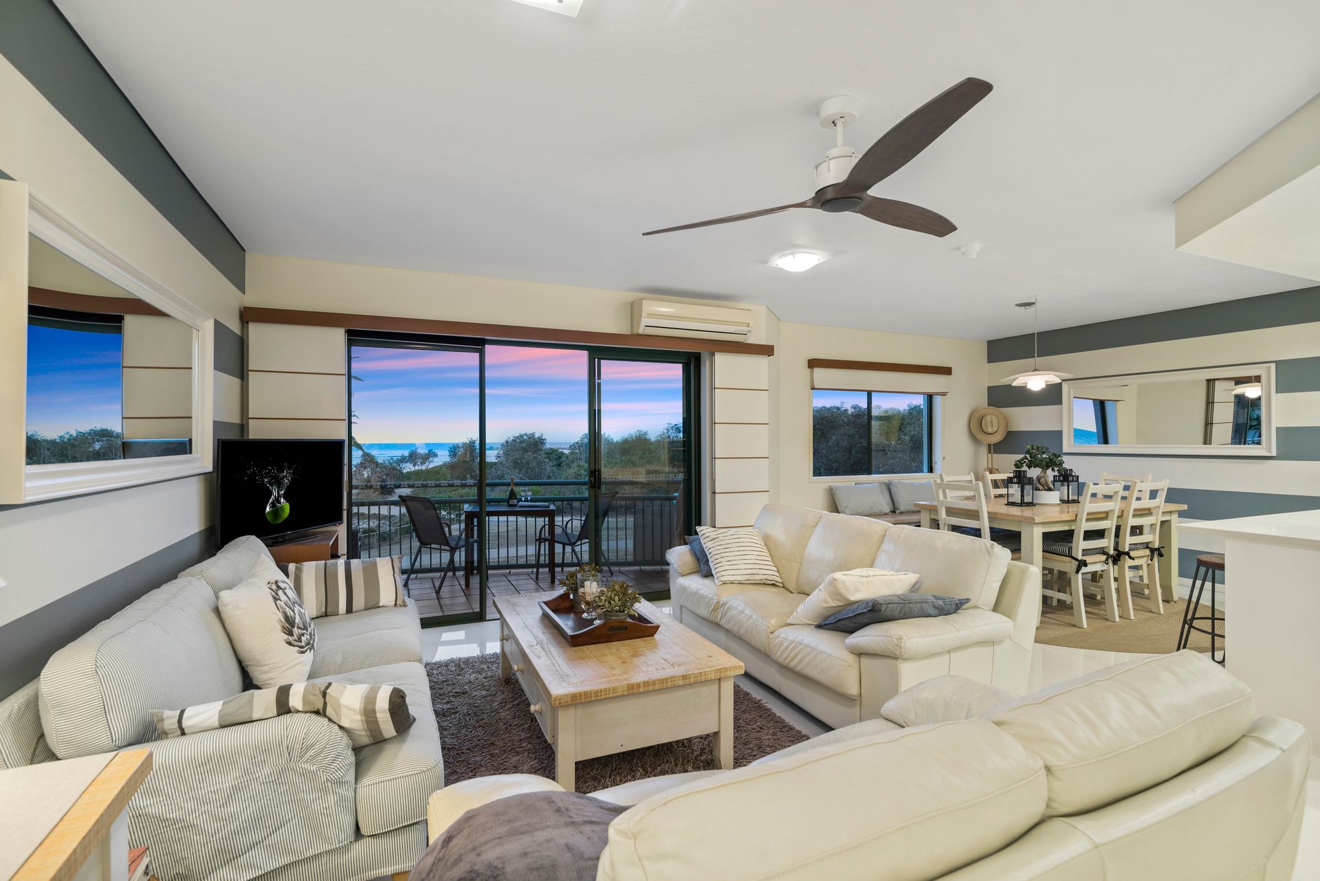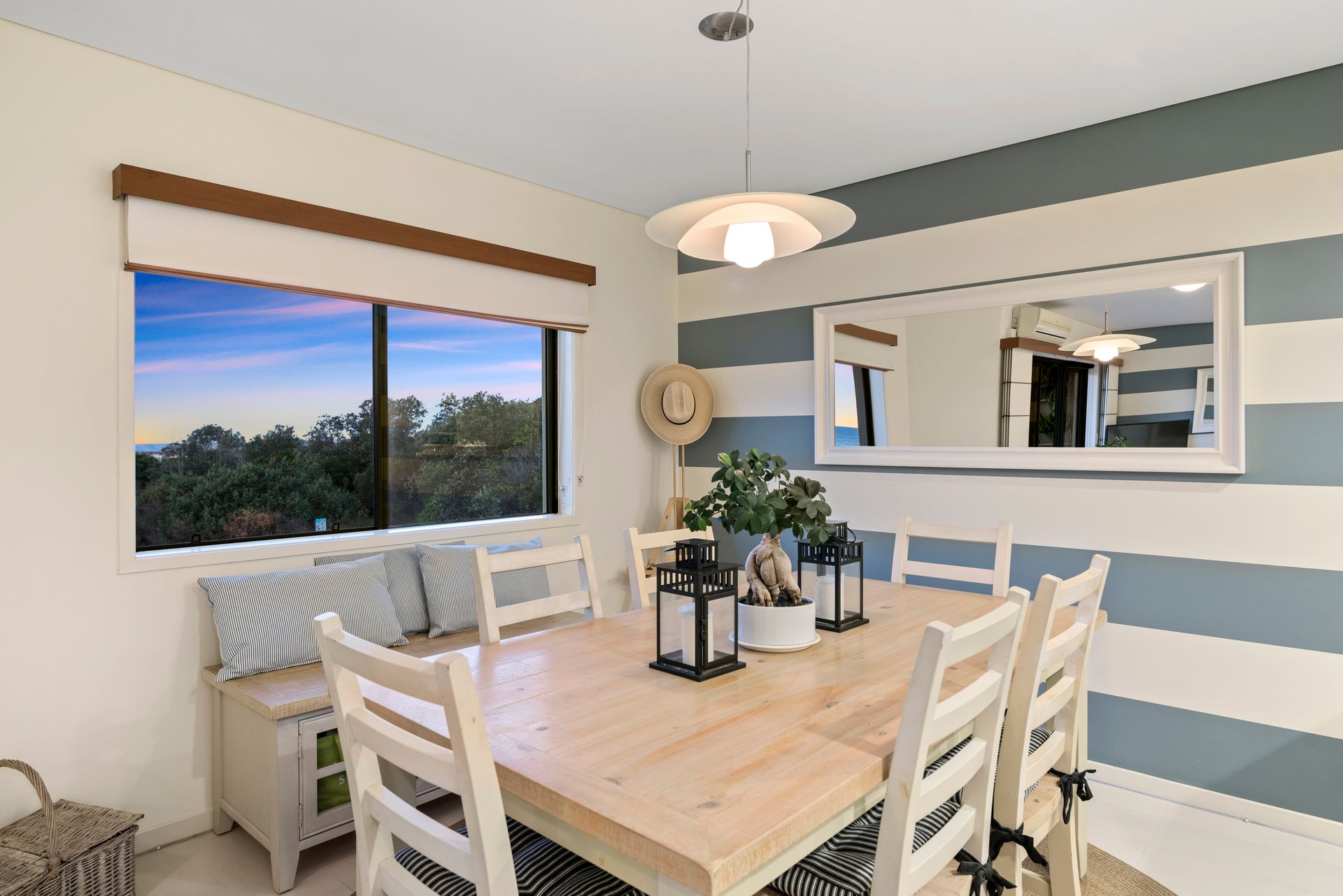 The lower level offers open-plan living with a cool tiled loungeroom equipped with reverse cycle air-conditioning, ceiling fan, smart TV and Wi-Fi and separate dining area for 6.