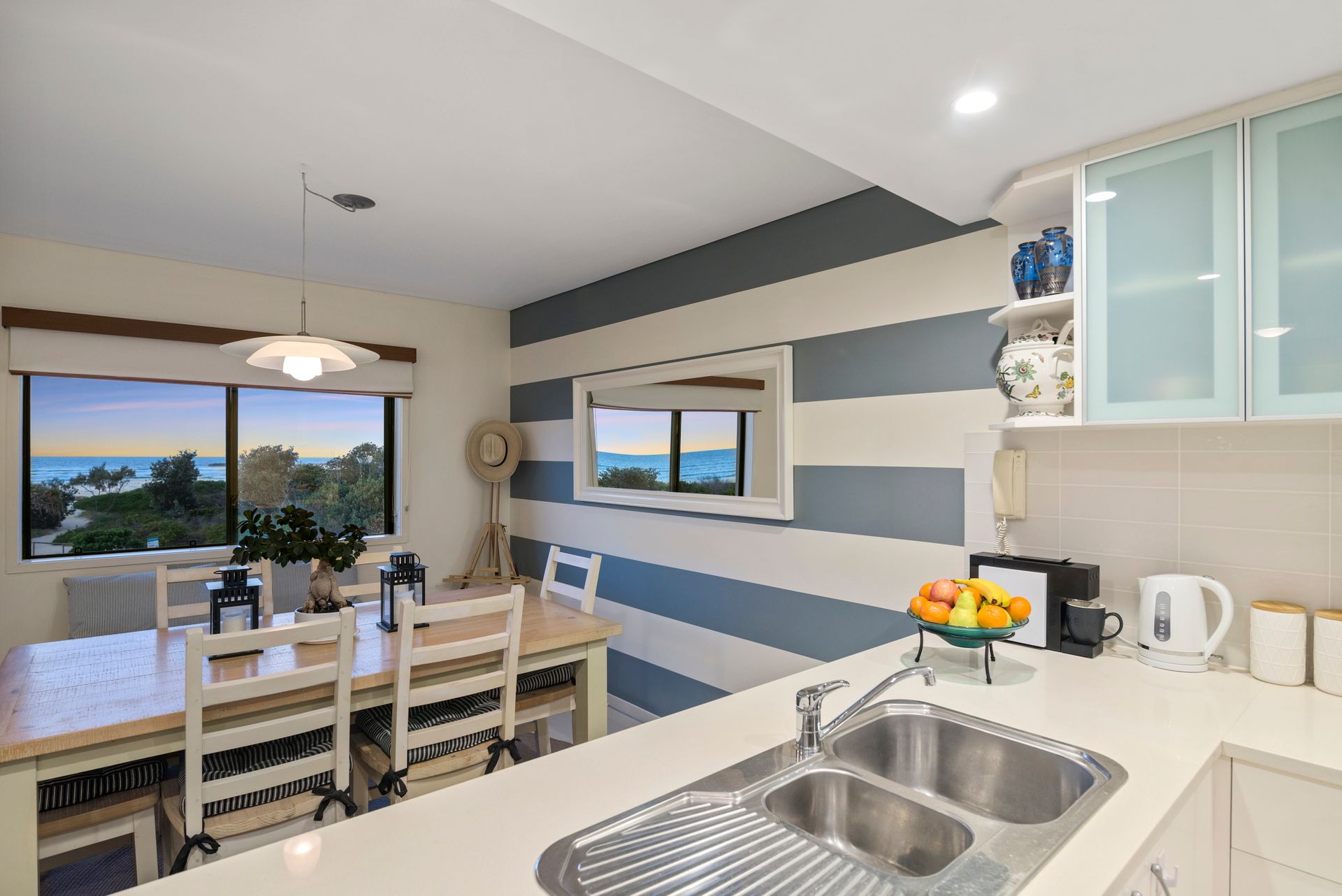 Upstairs, a generous master suite comes with a king bed, TV, ensuite, built-in robe, ceiling fan and beautiful ocean views.