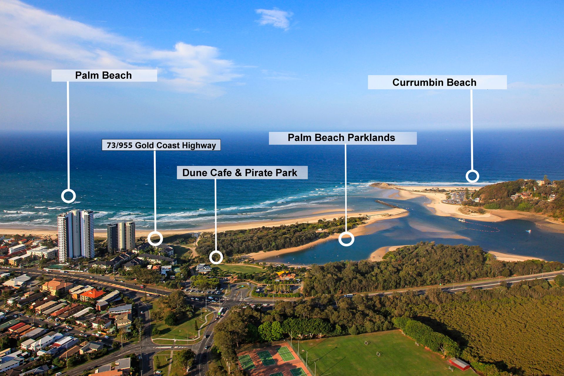 Beautiful Palm Beach is just steps from the patrolled section or beach, and the calm, clear blue waters of Currumbin Creek.