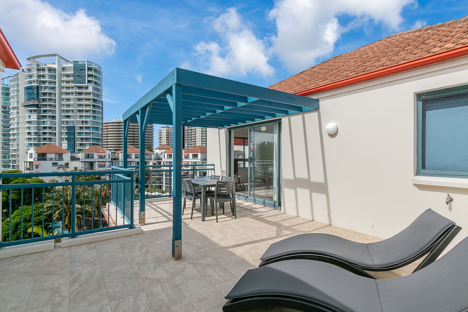 Step out onto the sunny expansive terrace complete with alfresco dining setting and sun loungers. This is the perfect spot to relax with a book or enjoy meals under the stars with loved ones.