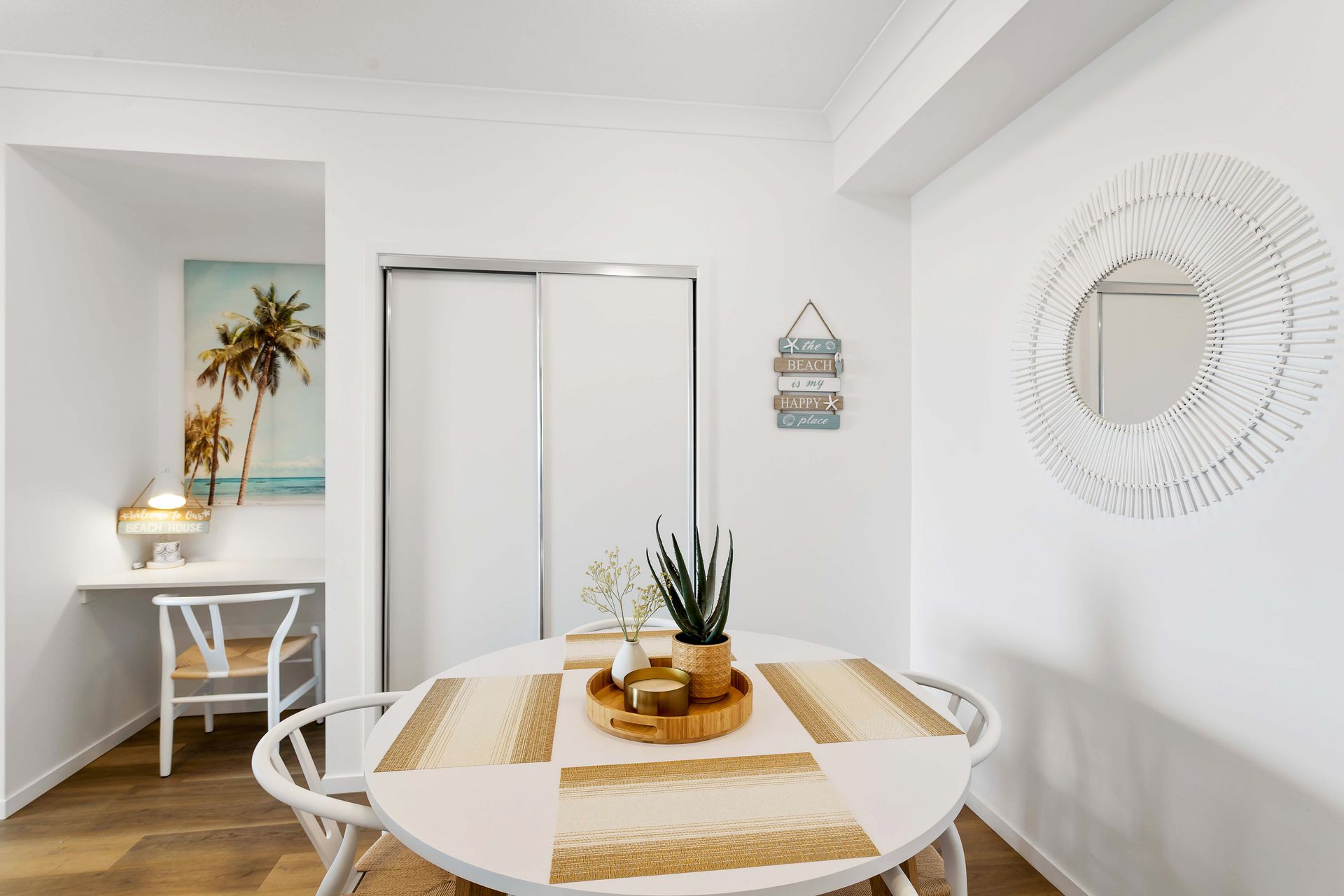 The open plan kitchen, lounge and dining is saturated with natural light and leads out onto the generous balcony overlooking Tweed Heads.