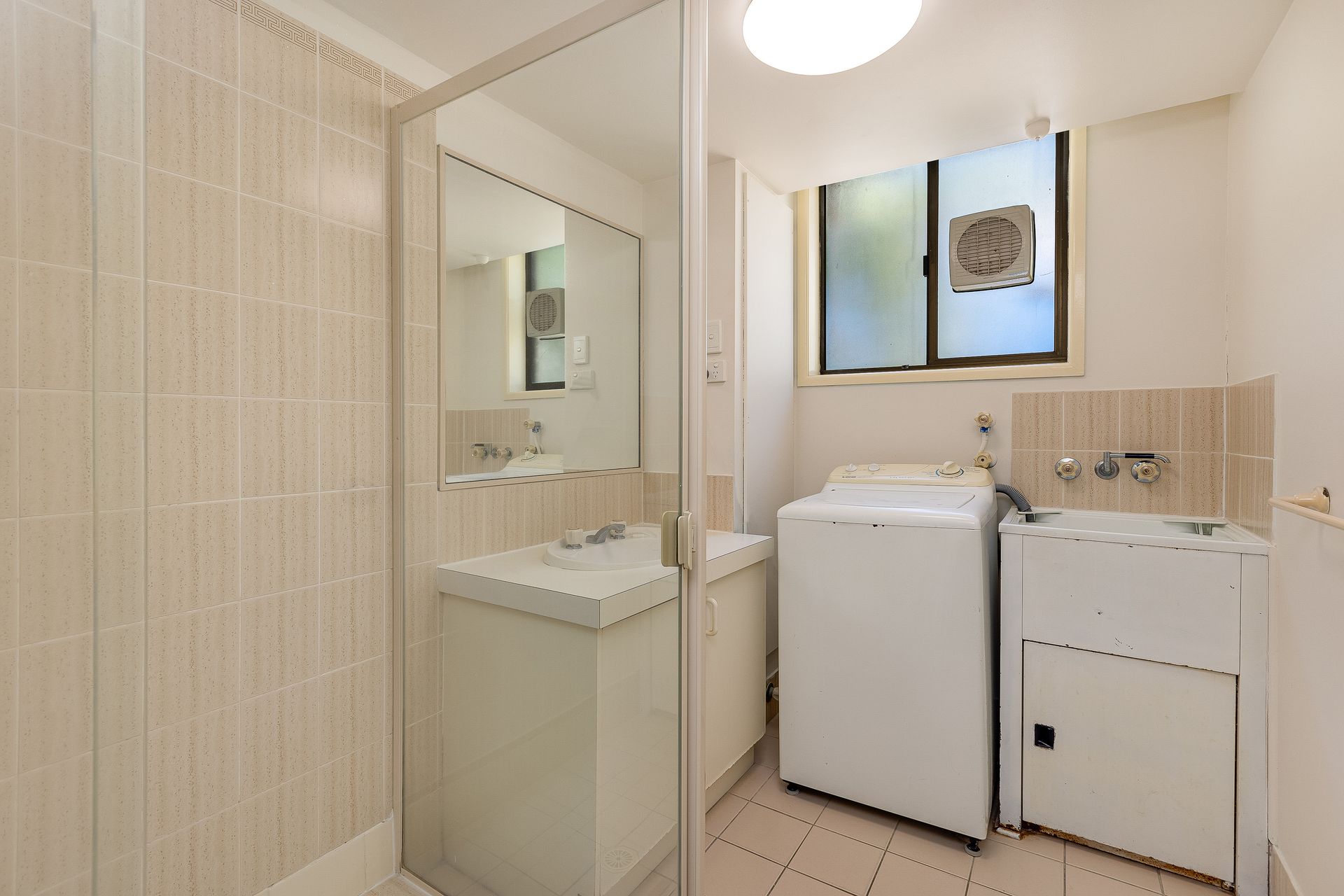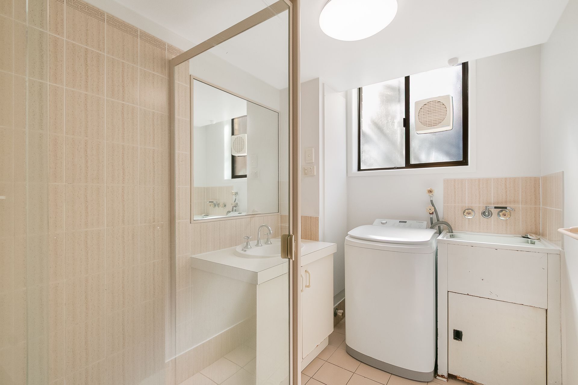 The bathroom includes walk in shower, washing machine and separate toilet.