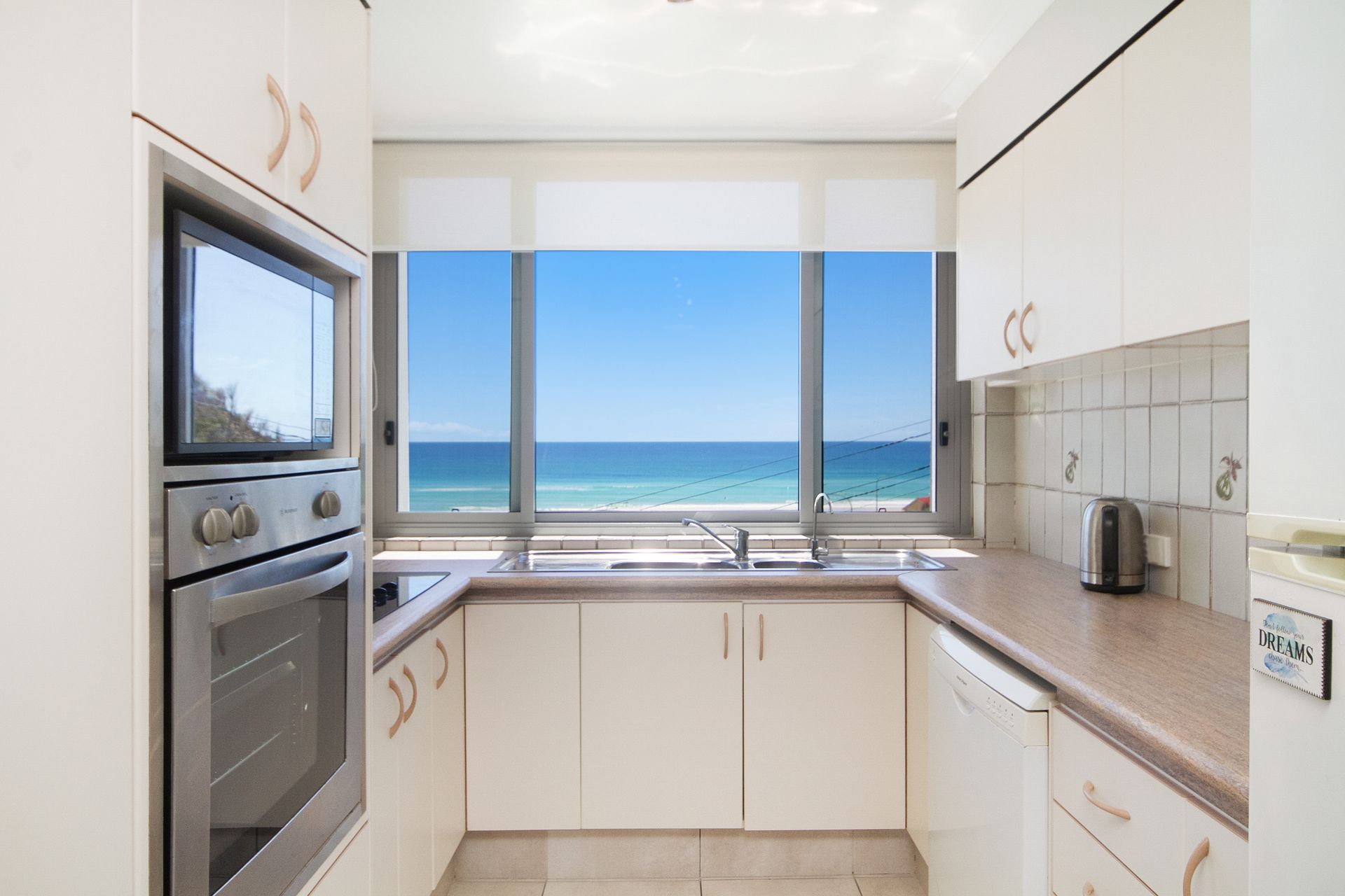 Beautifully presented, previously renovated 2 bedroom apartment on the 6th level, air-conditioned in lounge/living room plus a ceiling fan and located directly opposite the world famous Kirra Point.
