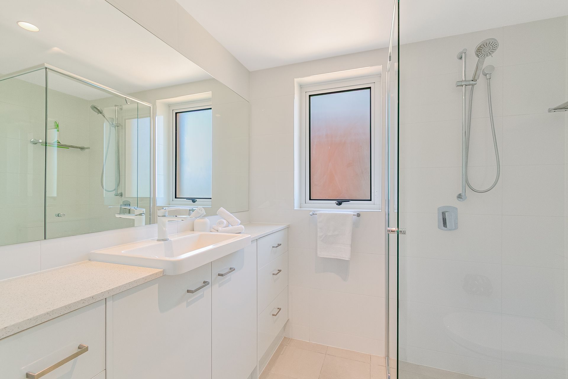 The master suite features a luxurious king bed, smart TV, walk-through robe, and a modernised ensuite with shower and toilet. It also boasts a private balcony with calming views of the Pacific Ocean.