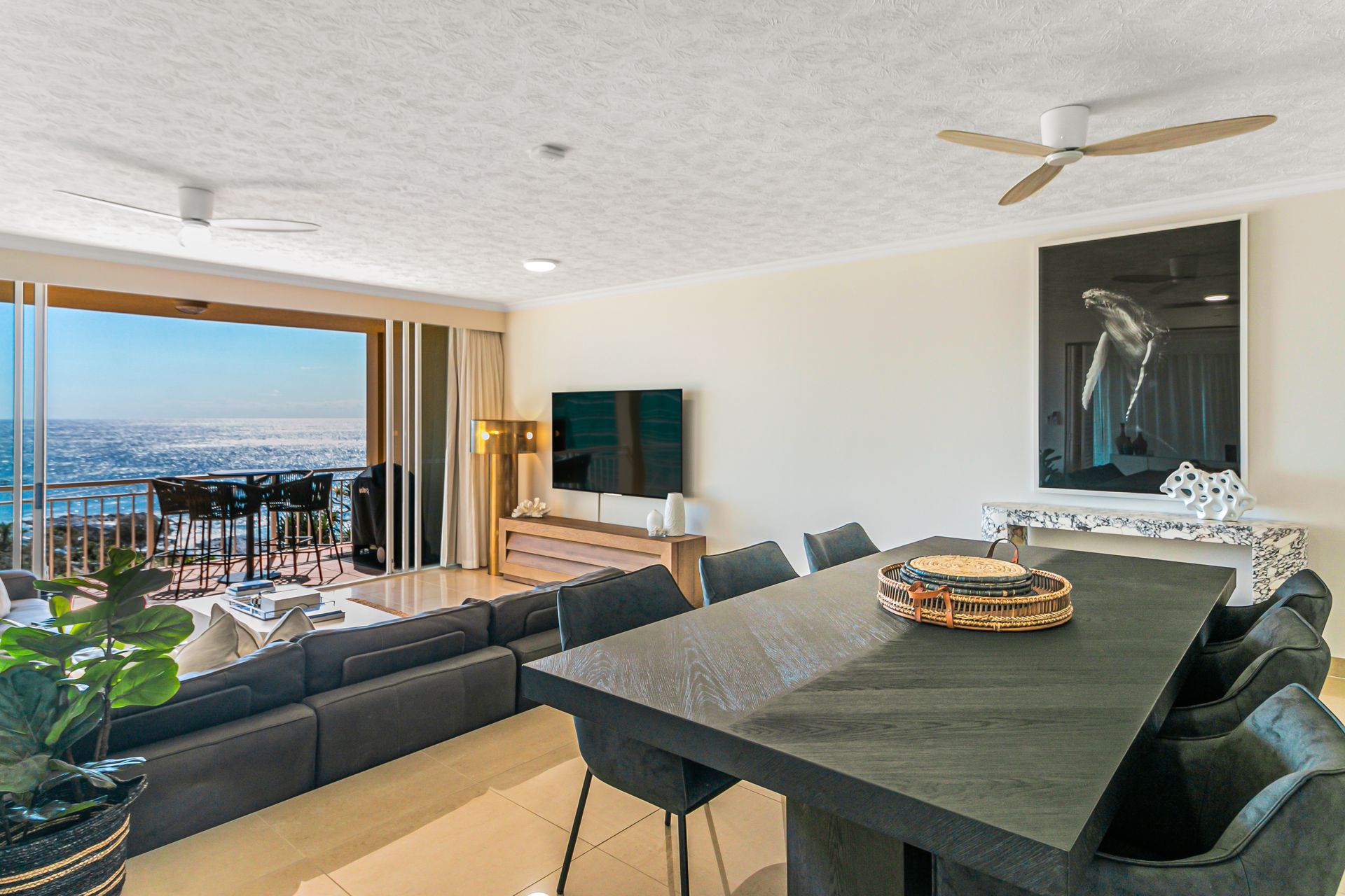 Step onto the beachfront balcony to savor breathtaking ocean views—ideal for morning surf checks or gazing at the distant shimmering lights of Surfers Paradise in the evening. Cooking and entertaining are a breeze in the fully equipped kitchen featuring an inviting island bench, Miele dishwasher, Smeg appliances and outdoor BBQ. For memorable gatherings, the dining room offers mesmerizing views and direct access to the terrace balcony.