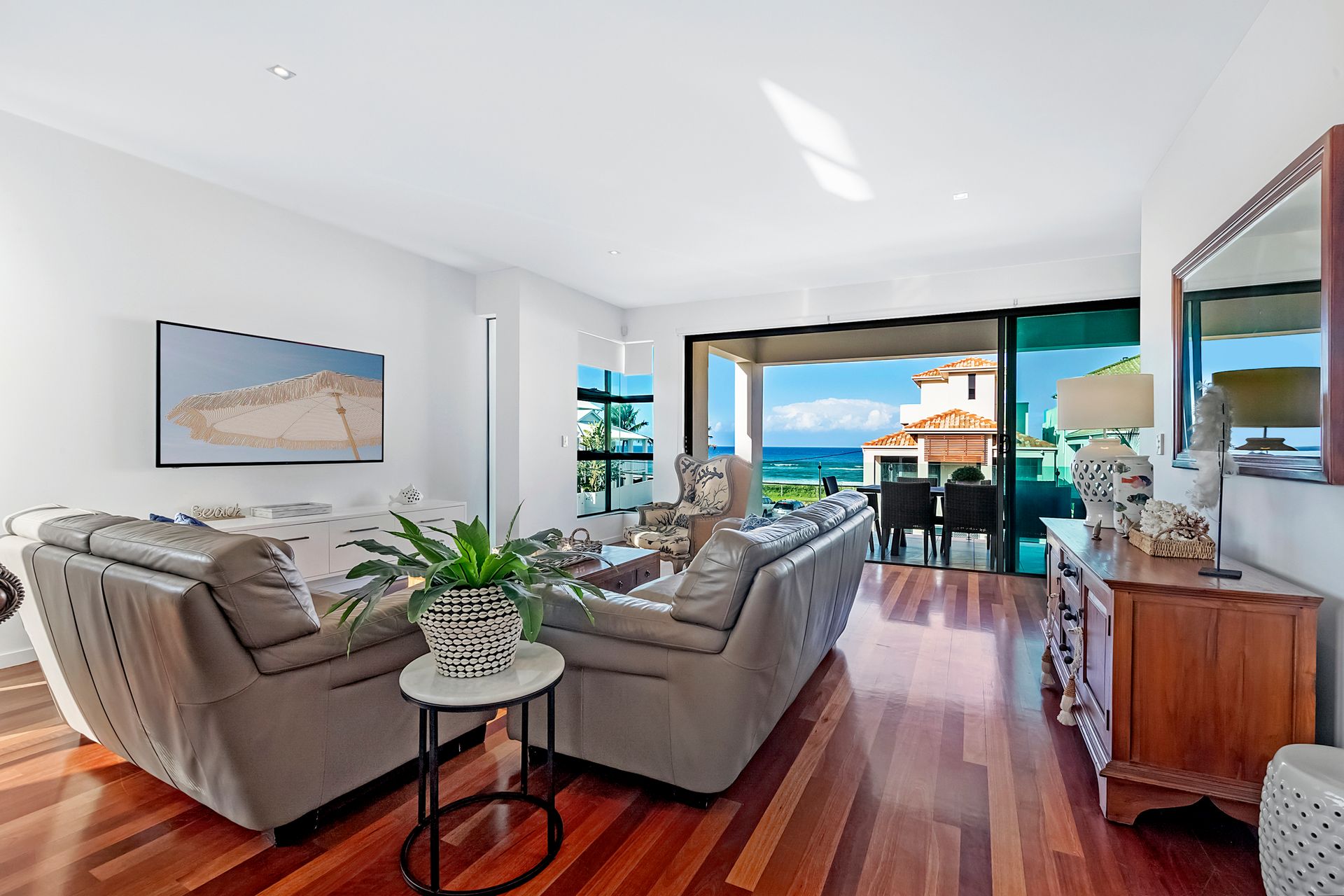 The bright and airy living rooms leads out onto the beachfront balcony with BBQ, alfresco dining and an incredible ocean vista.