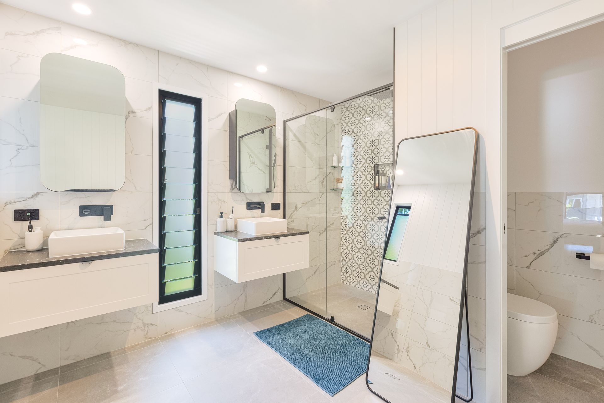 - Main bathroom with shower, bath and separate toilet