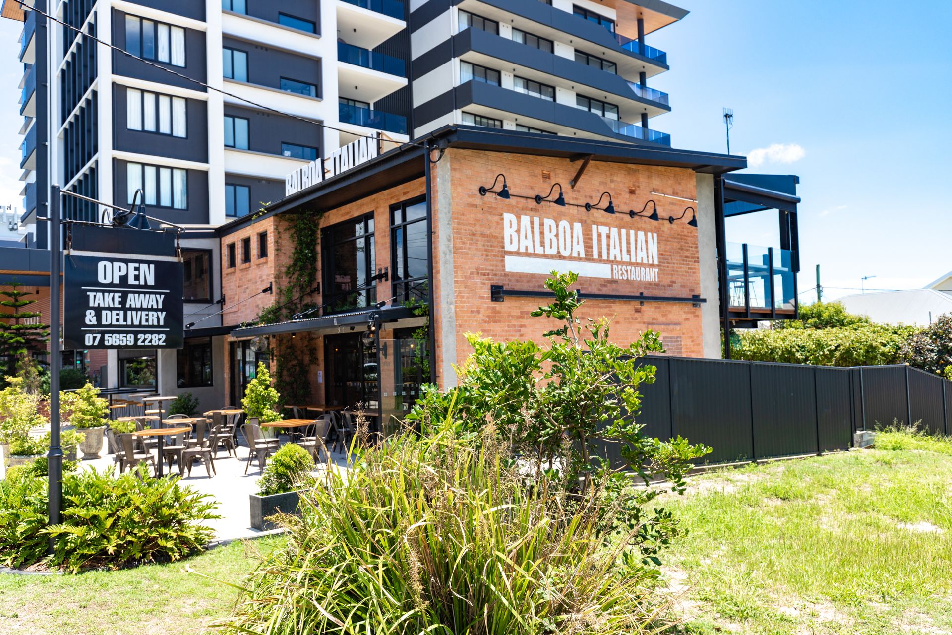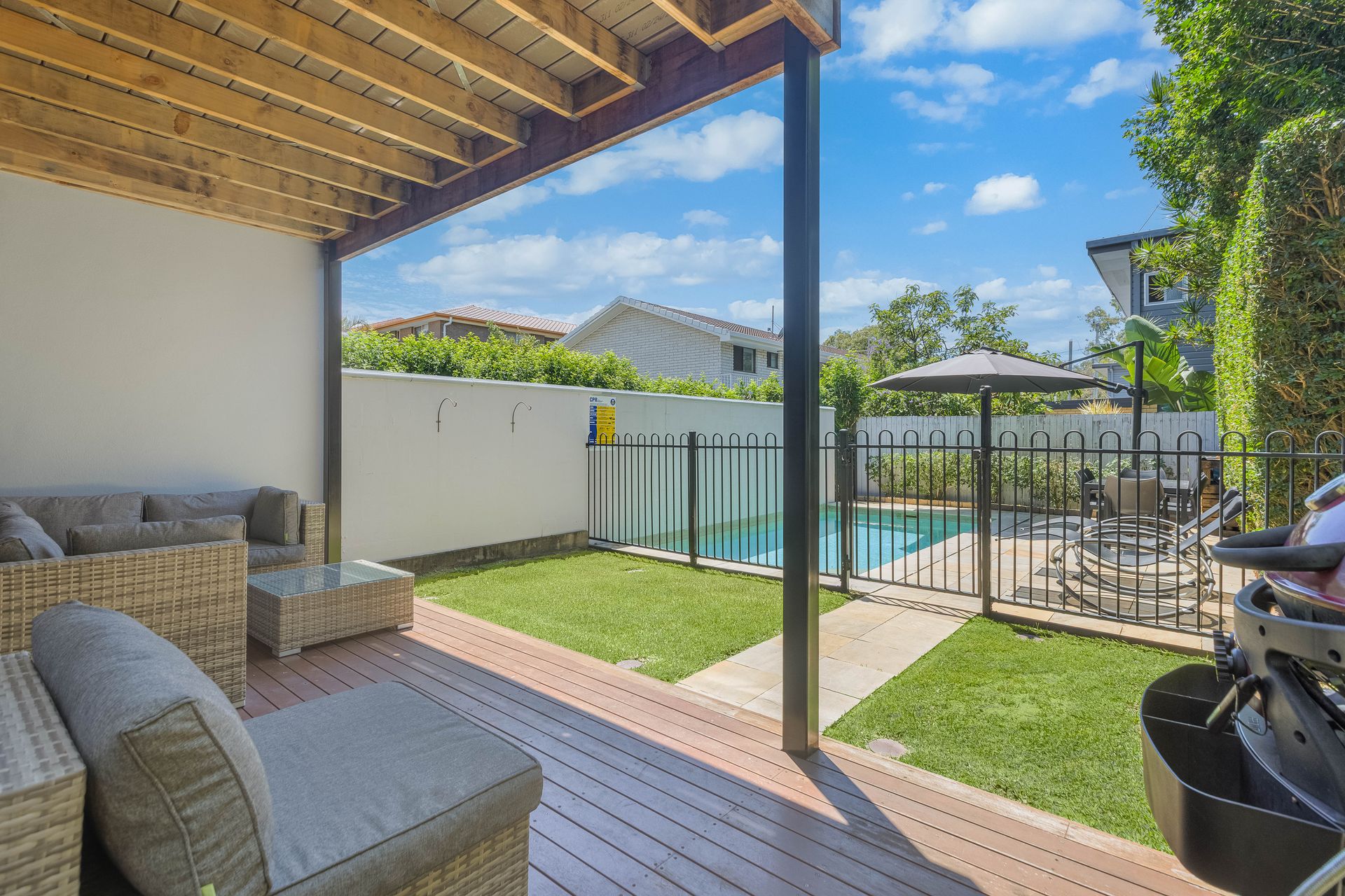 - Covered patio with alfresco dining setting and gas BBQ