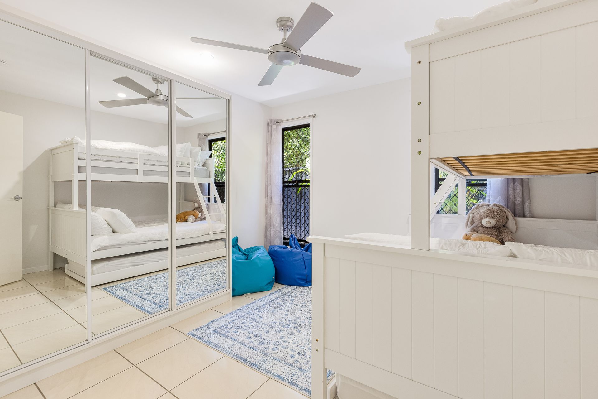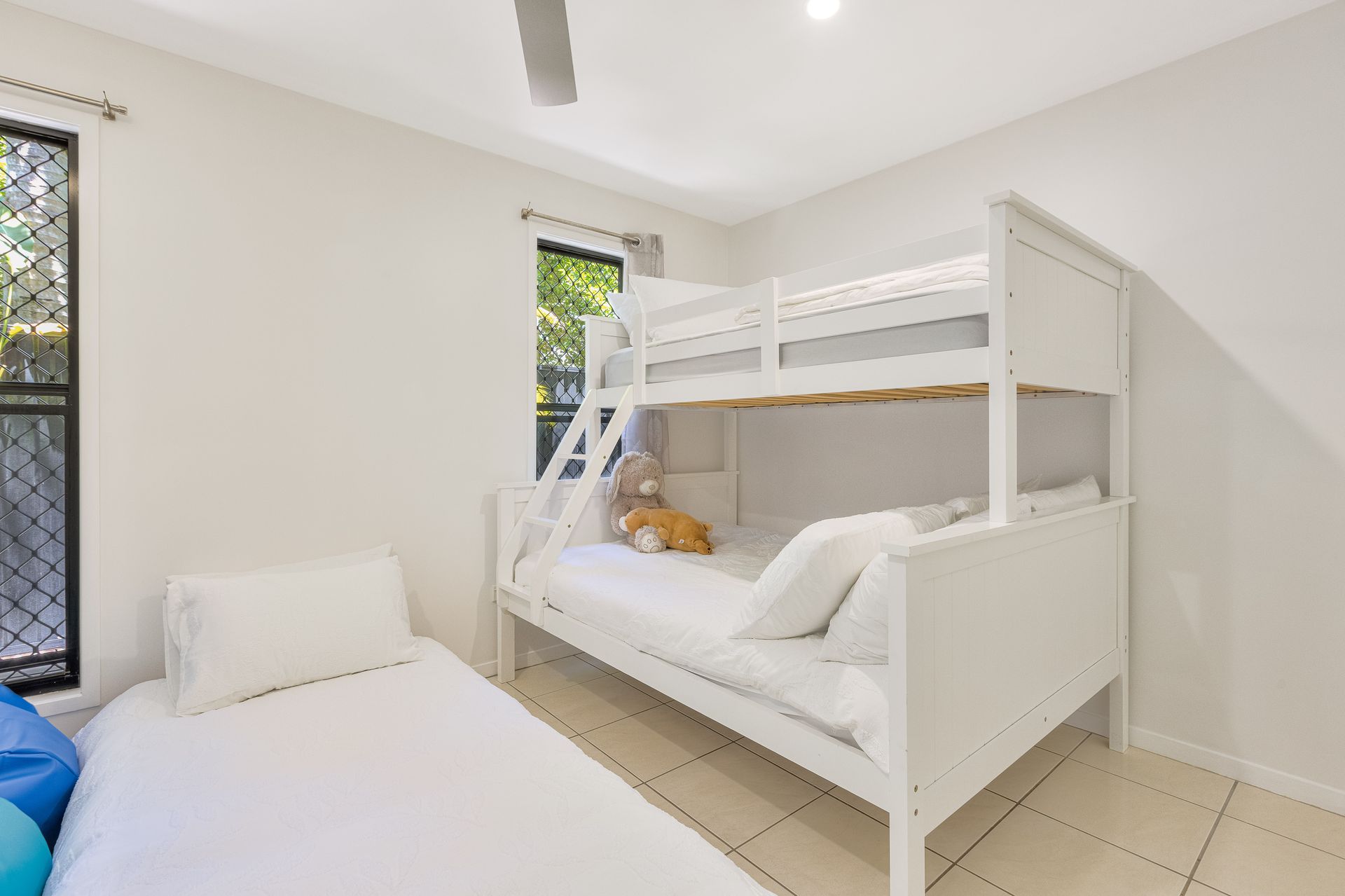 - Bedroom with 1 x tri-bunk (single bed on top, double bed on bottom) and 1 single trundle bed