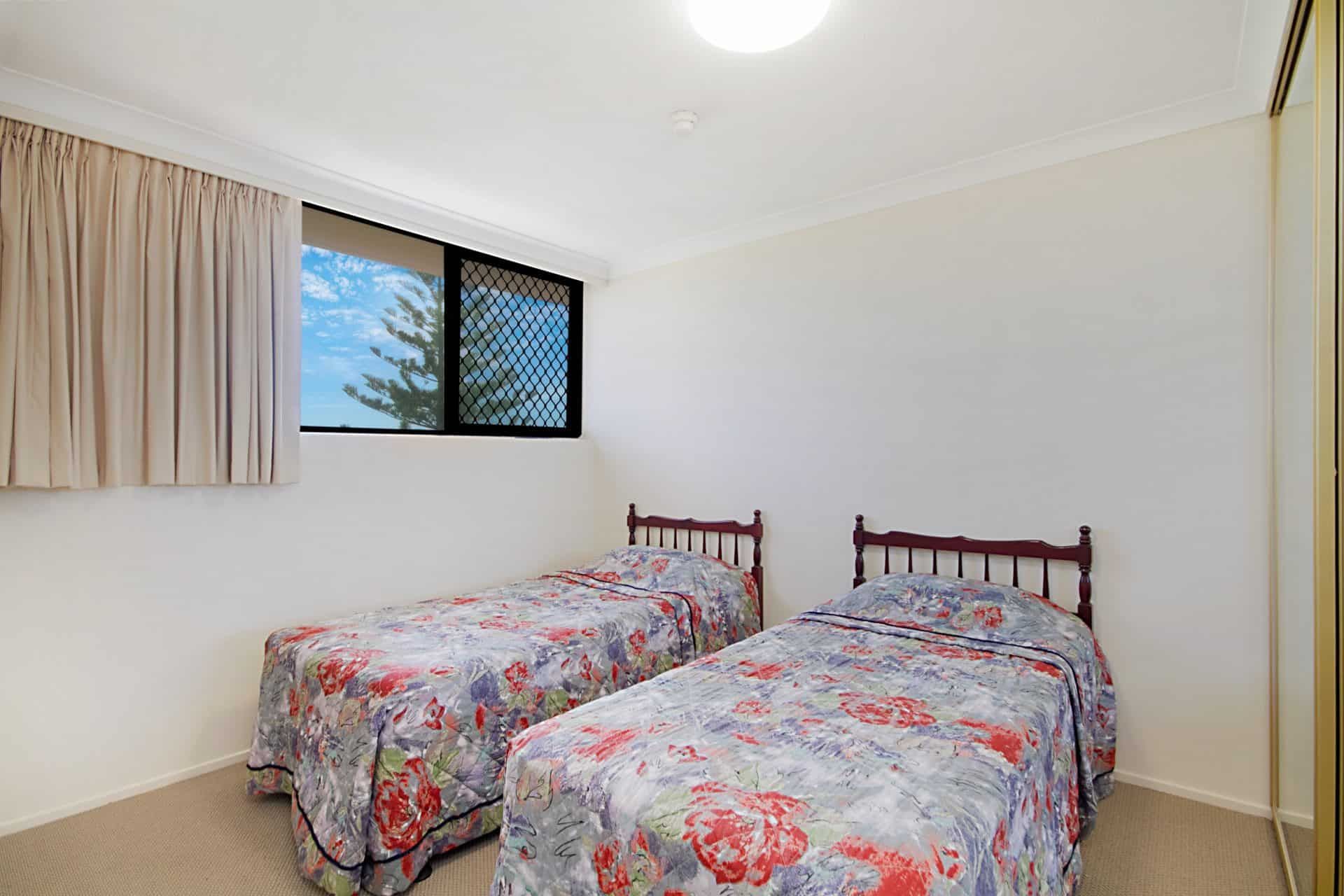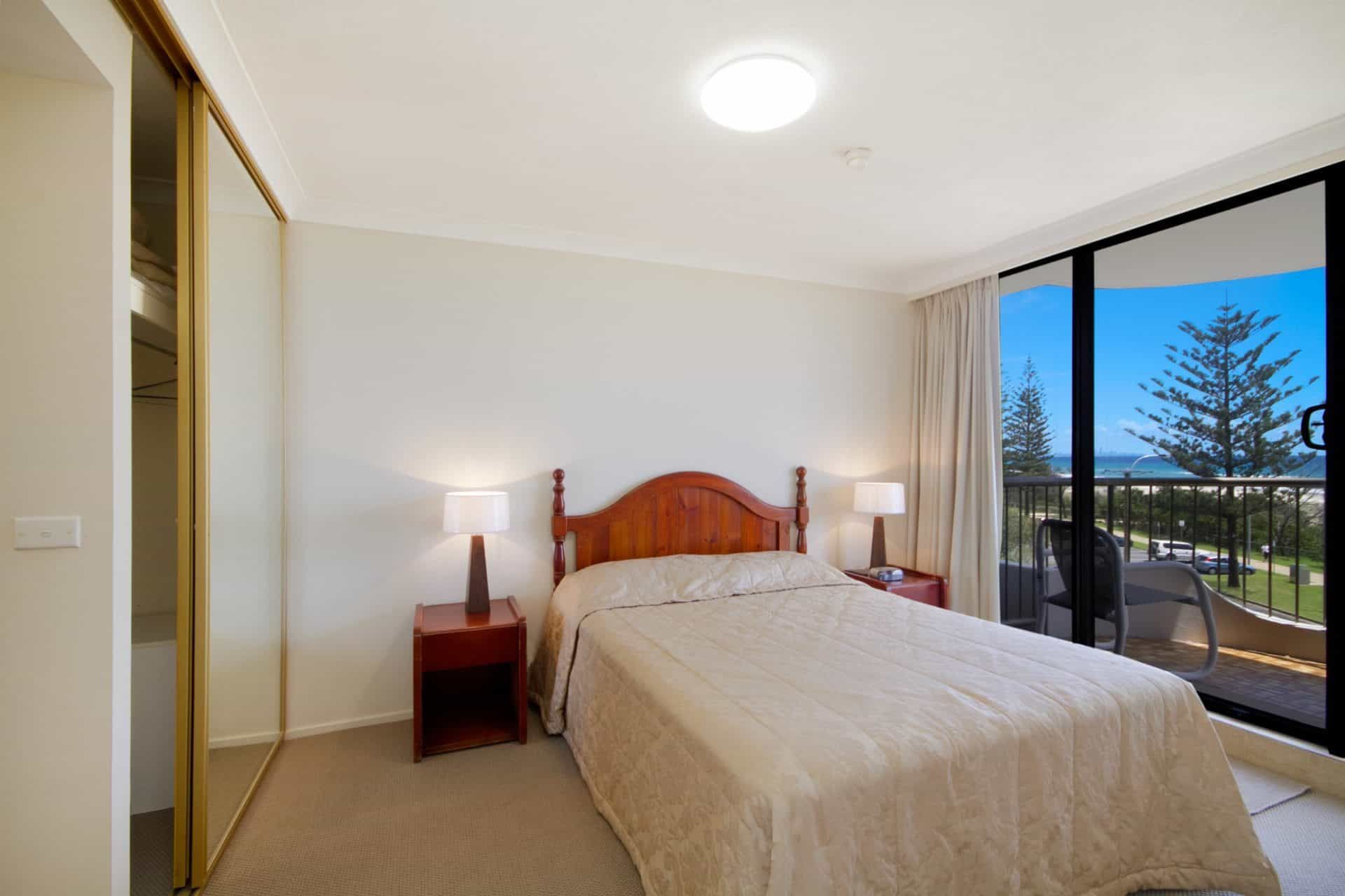 The master bedroom is ideal for relaxing with queen bed, wall mounted flat screen TV and access to the ocean front balcony. The second bedroom has 2 single beds and also features ocean views.