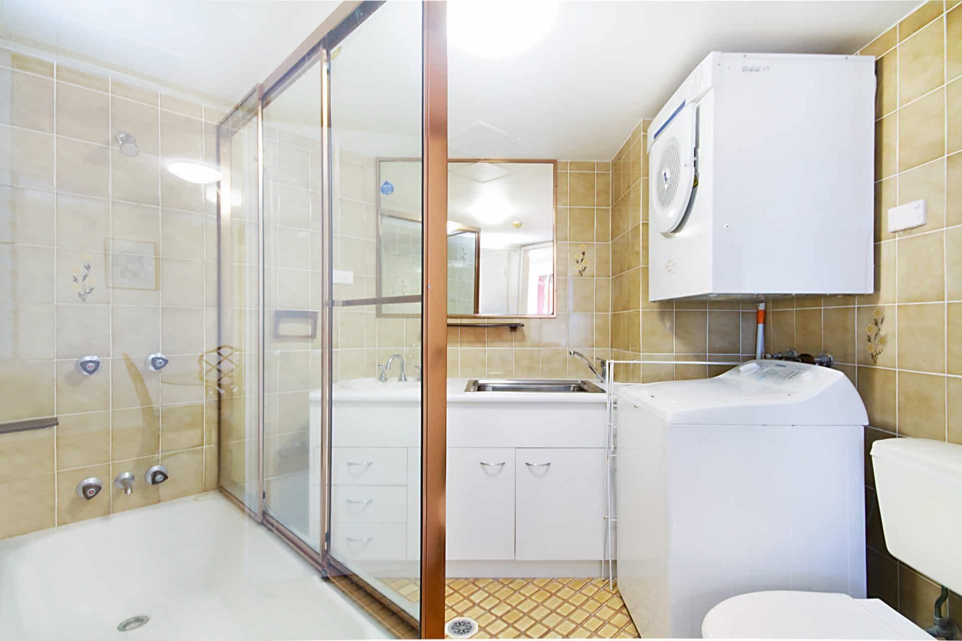 There are 2 bathrooms, master with ensuite and main bathroom with shower over bath and washing machine and dryer.