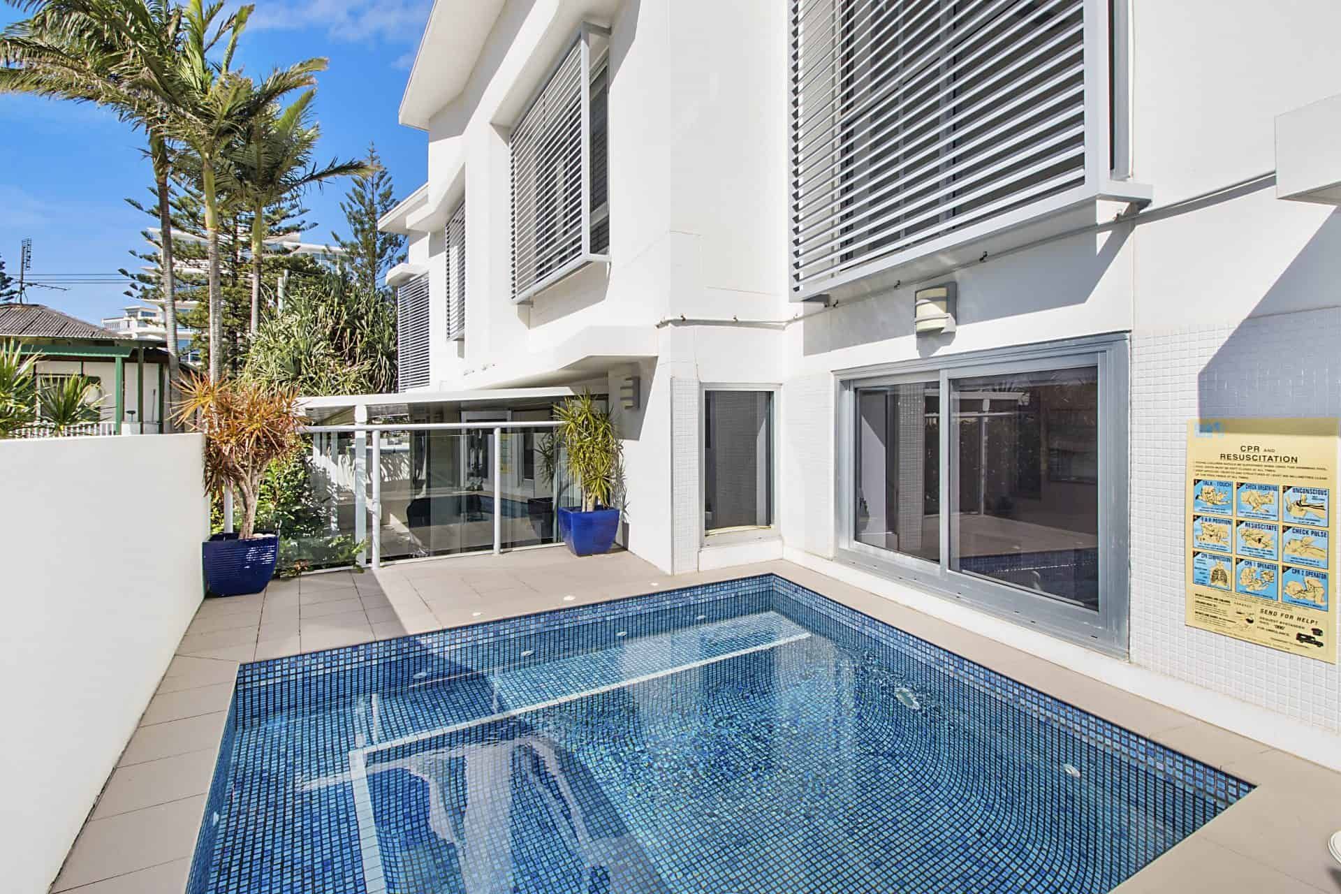 Our family (two adults and seven-year-old) thoroughly enjoyed our stay in this fabulous house. We loved all the amenities and the private outdoor spaces. The plunge pool was a hit with our child. The lockable two-car garage in the underground carpark with direct access to the villa via private staircase was perfect. We also loved the close proximity to surf, shops, eateries and parks. We found the staff at GCHH to be polite, patient and helpful. Our holiday here was exceptionally good.