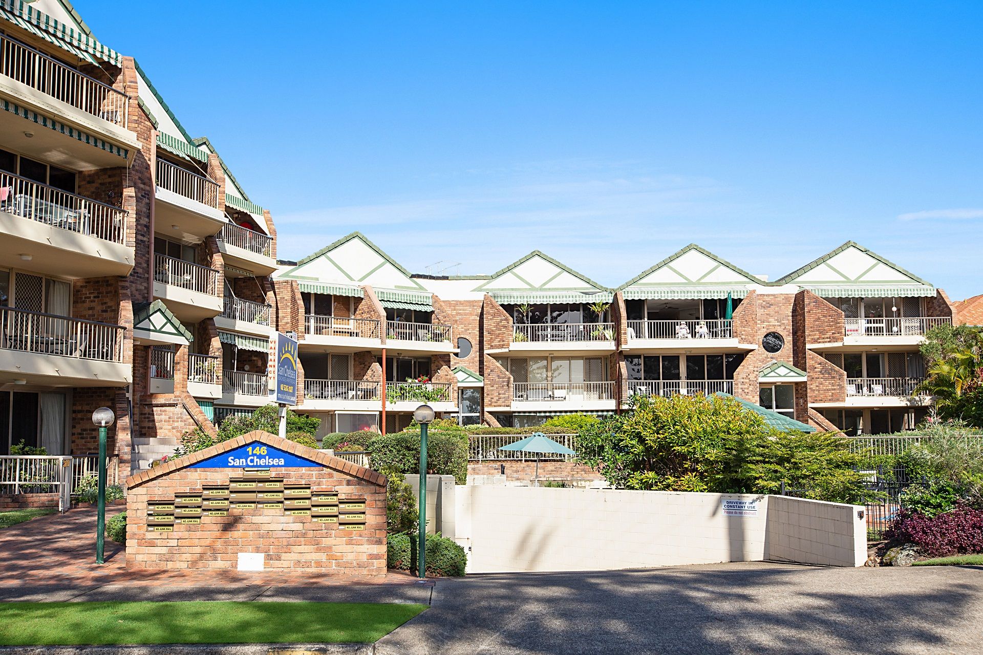 San Chelsea is a small secure complex with a wide frontage to beach and features an inground swimming pool set amongst lush tropical gardens. There is secure parking for one car - parking height is 1.9m max.