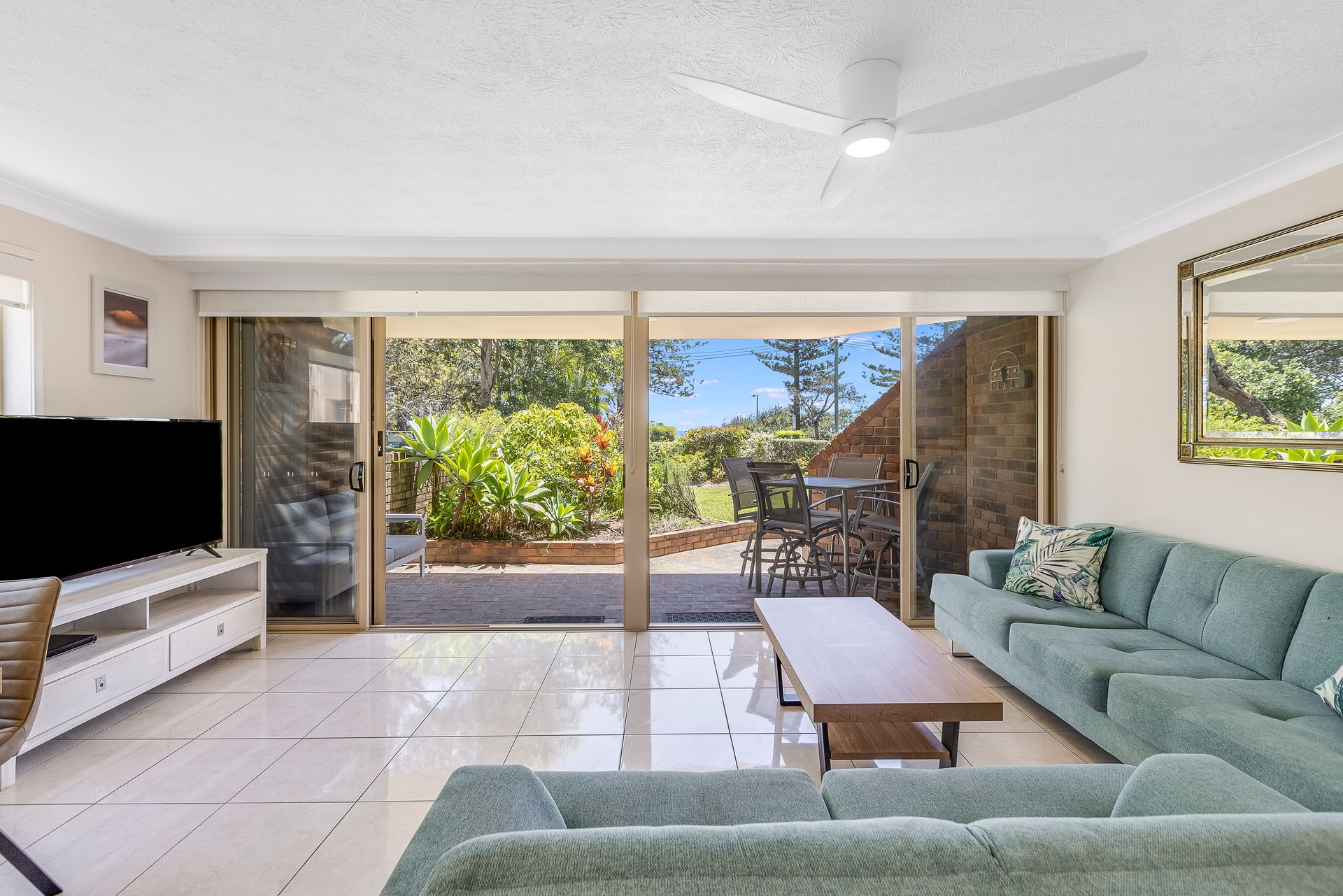 Private sunny ground floor apartment, North East aspect , attractive and modern open plan living and an expansive patio to enjoy a morning drink, evening meal or just watch the ocean. Then step out amongst lush tropical gardens with a charming swimming pool area to cool down.