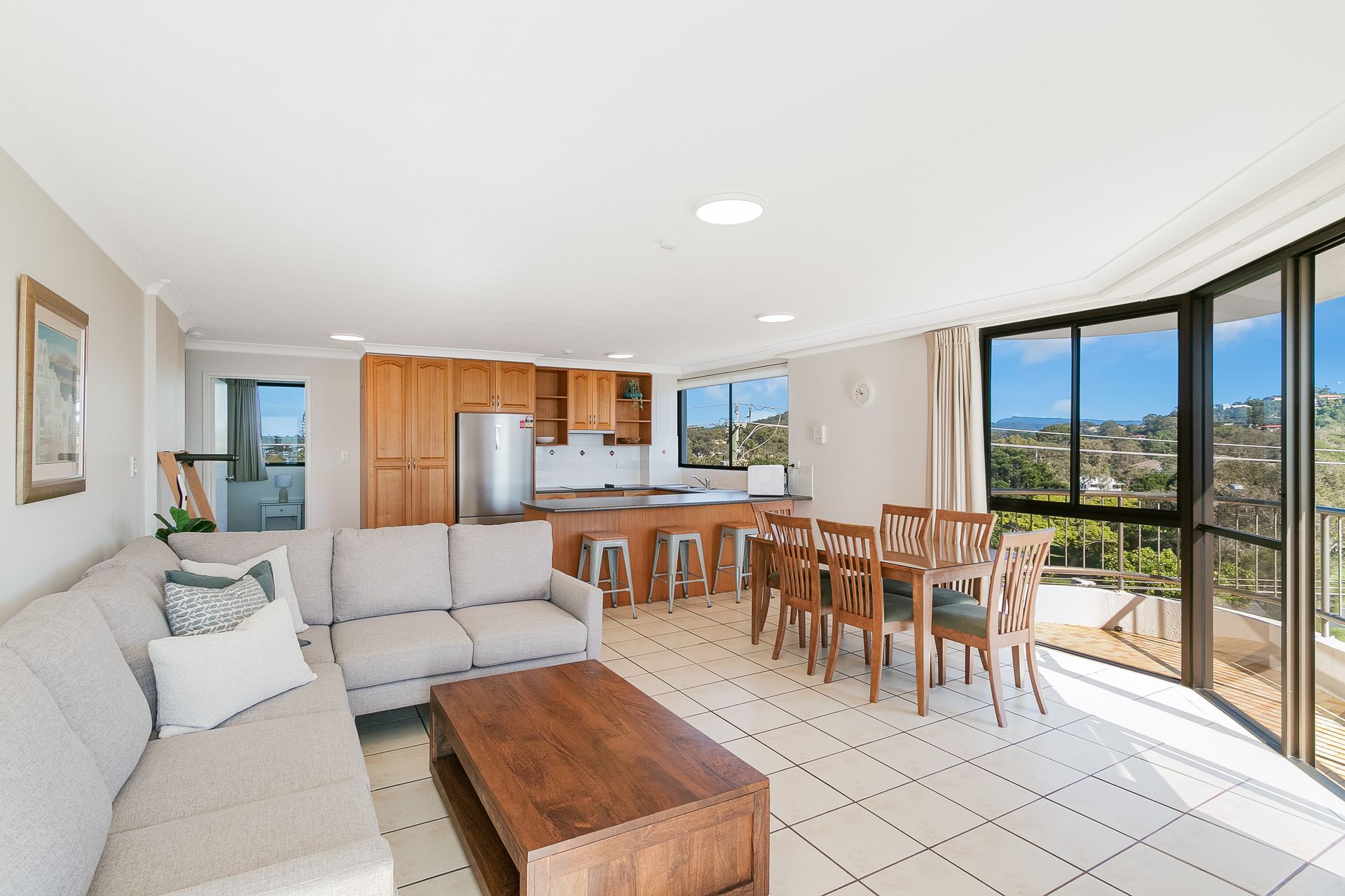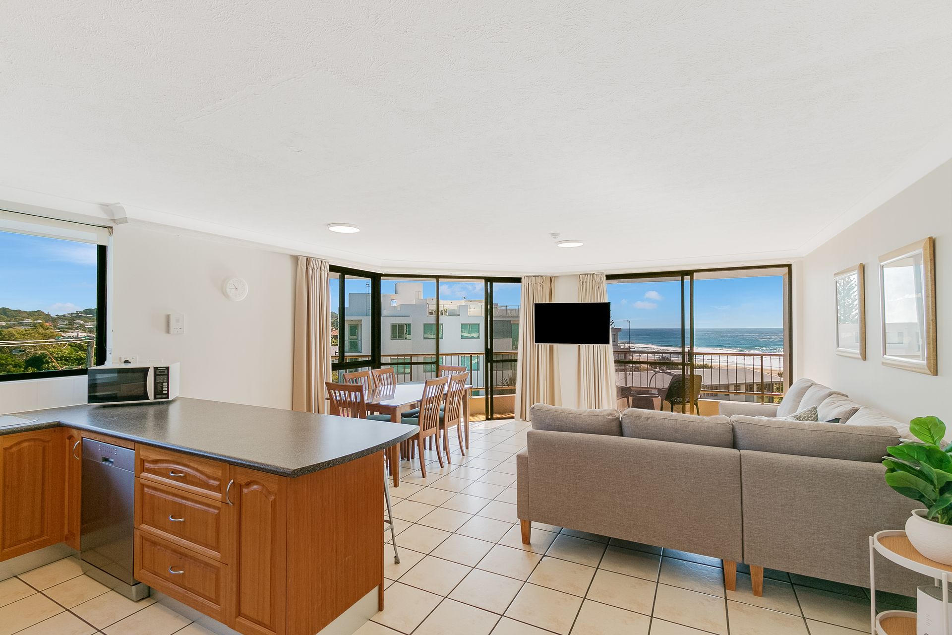 The living area opens onto the beachfront balcony which offers sweeping ocean views north to Surfers Paradise. This is the perfect spot to enjoy sunset drinks or whale watch in winter.