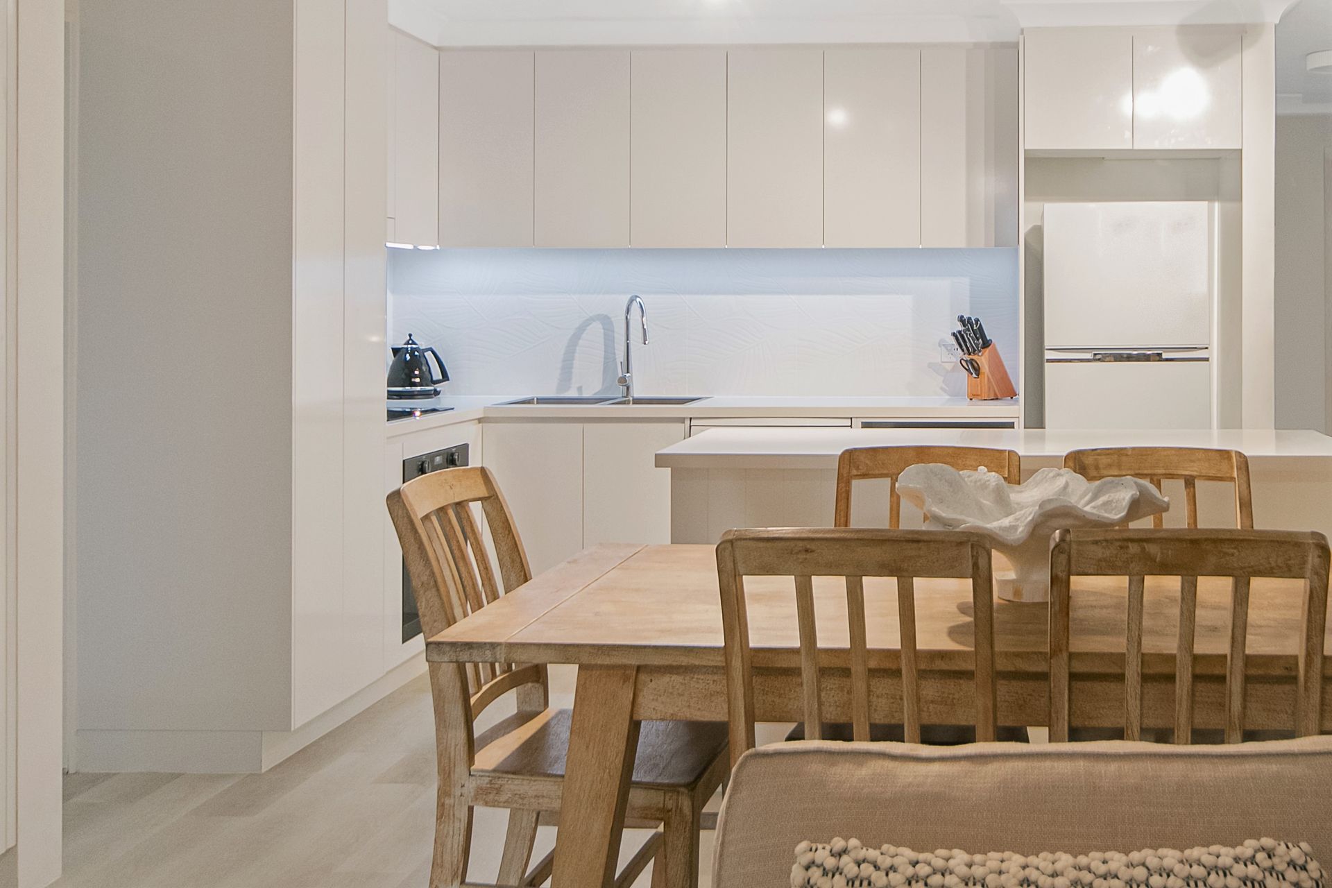 The kitchen is modern and fully equipped with dishwasher and island bench overlooking the dining area with plenty of room to enjoy meals together on holidays.