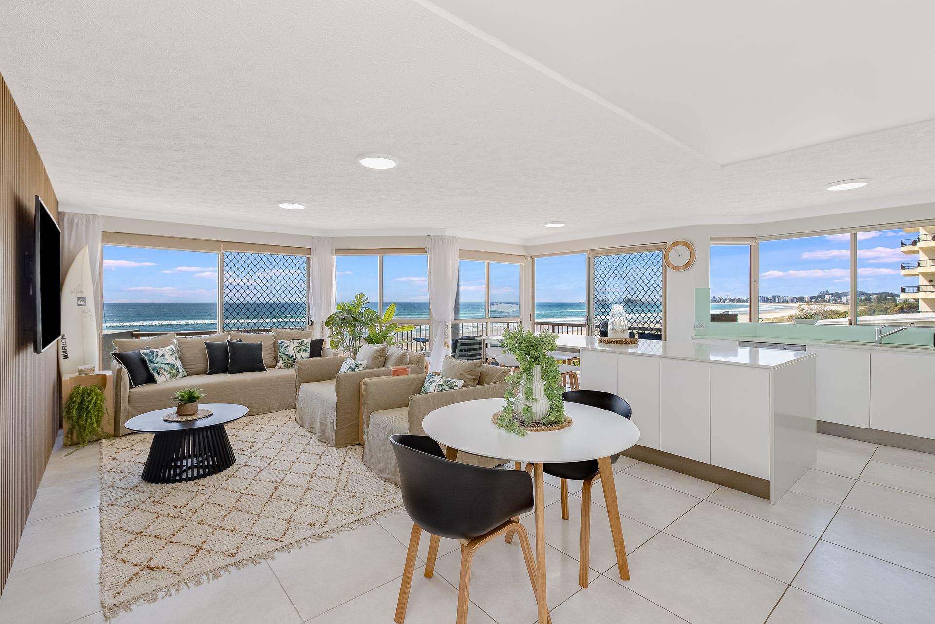 Seacrest 9 is a spectacular apartment located on the absolute beachfront at Tugun beach and features stunning panoramic ocean views from Surfers Paradise to Snapper Rocks.