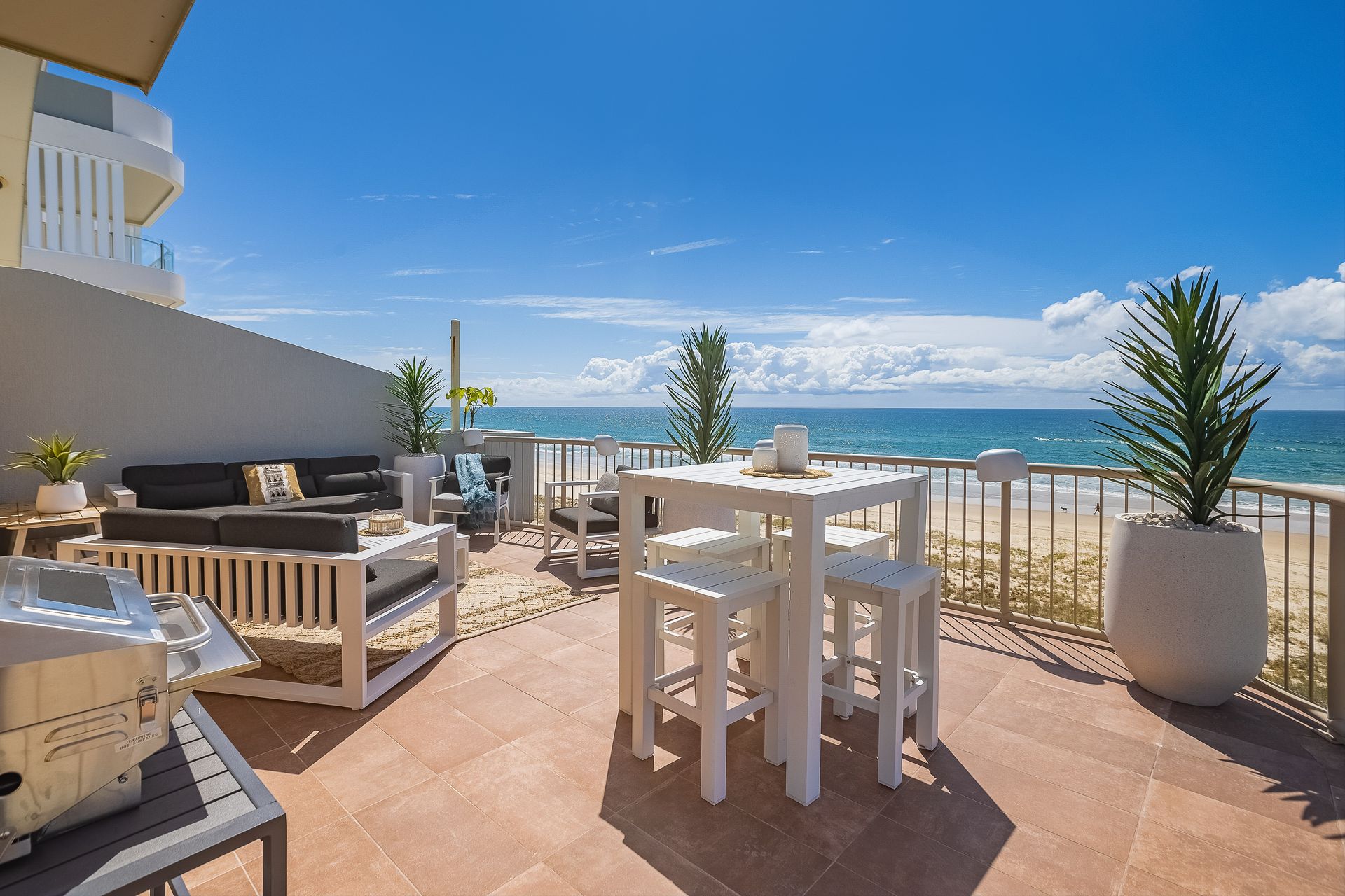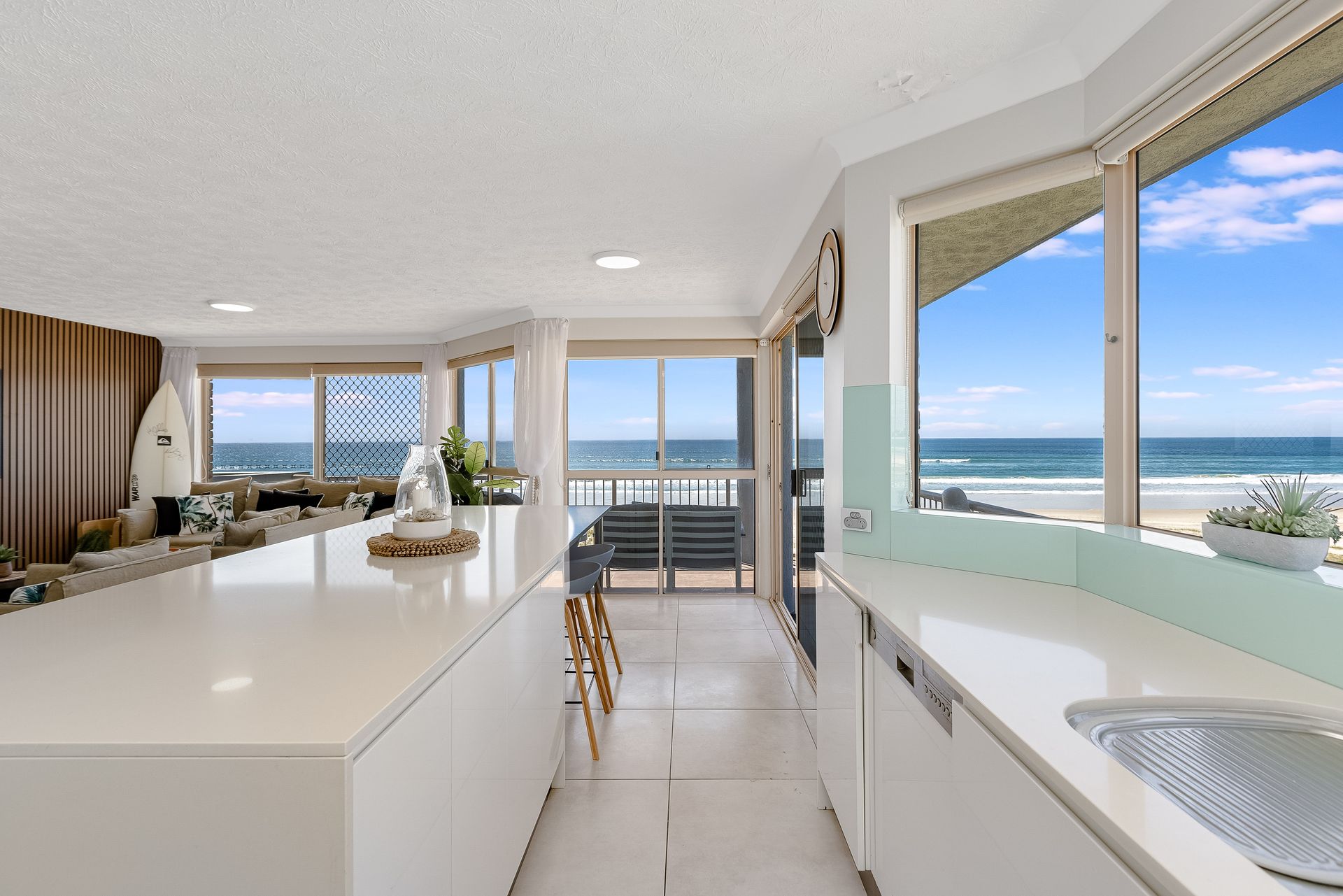 This top floor apartment has been beautifully furnished and styled to offer a blissful getaway on the beach.