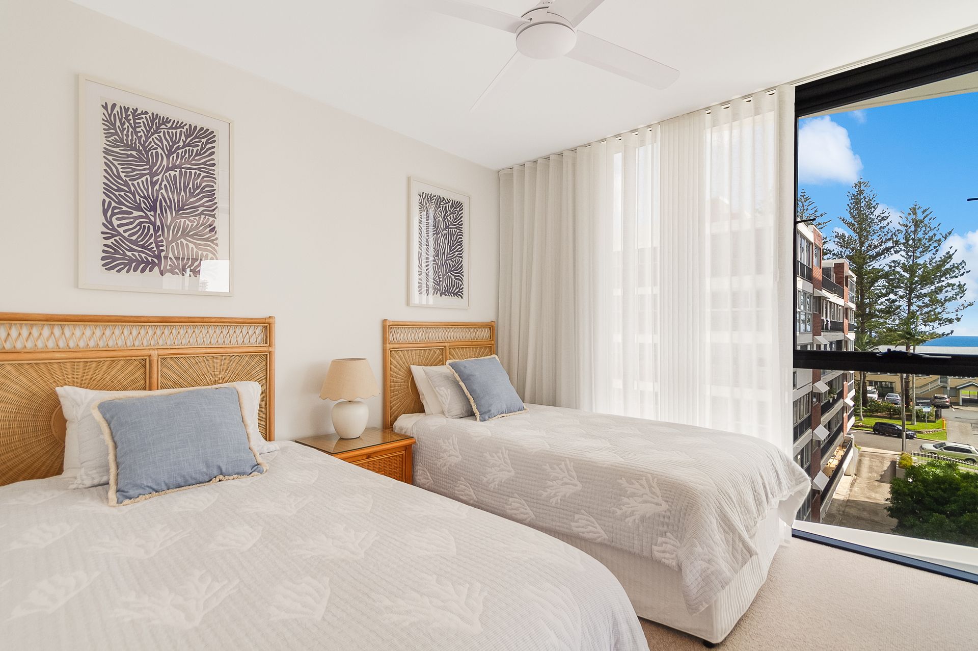 The second bedroom comes with 2 king single beds and both bedrooms have ceiling fans and zoned ducted air-conditioning for your comfort.