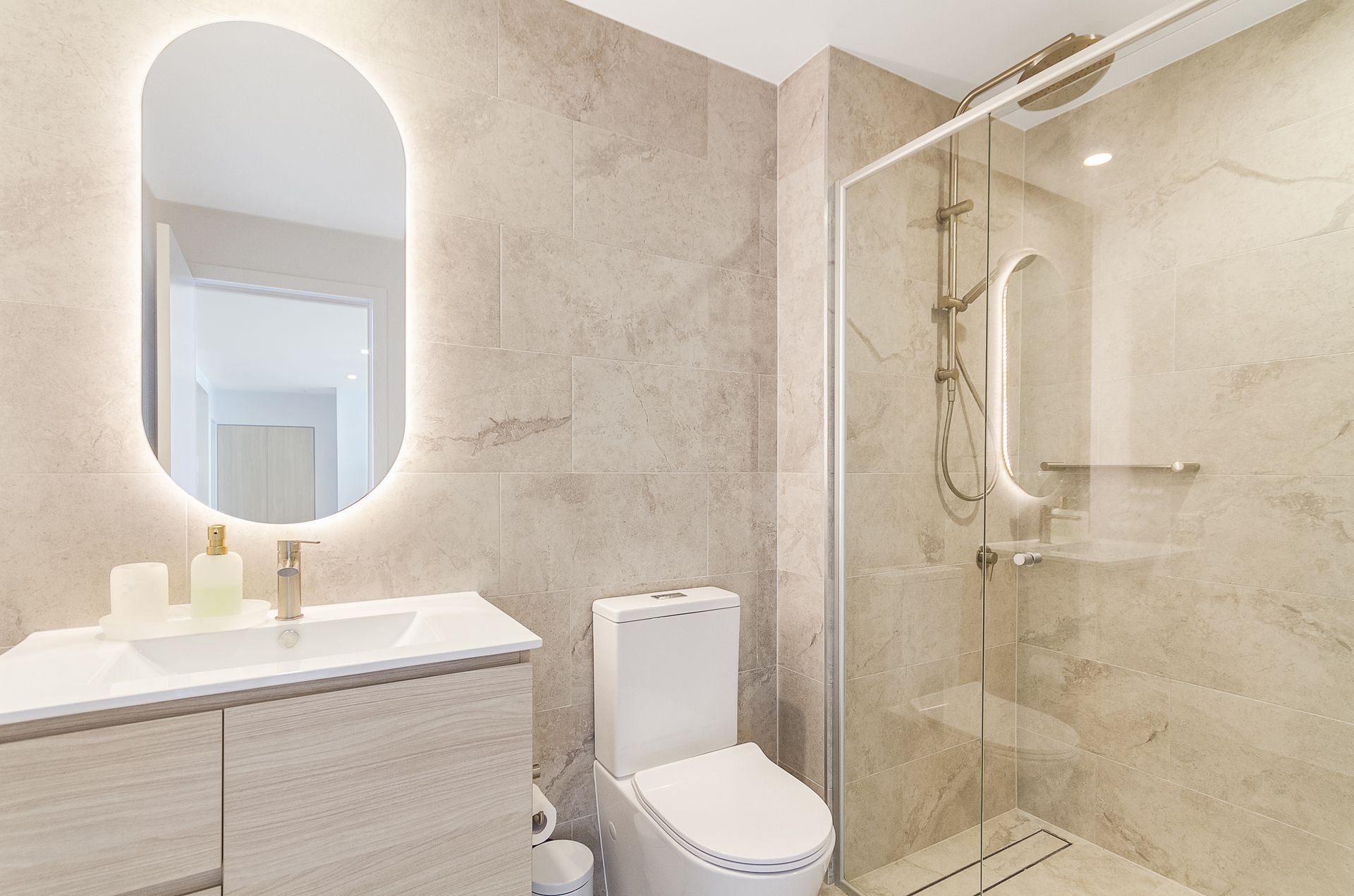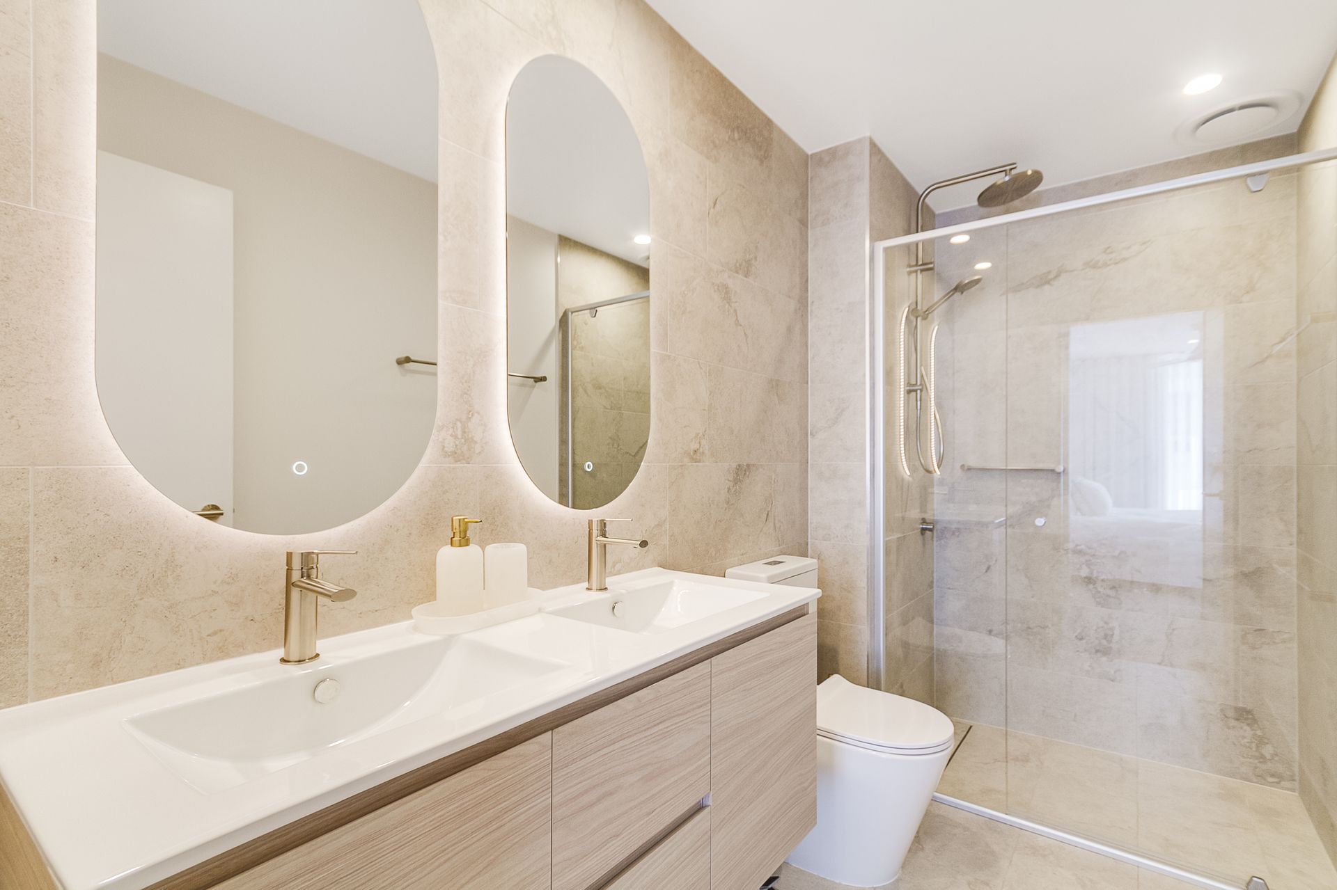 The apartment offers 2 bedrooms, including master suite with comfortable king bed, access to the balcony, walk-through robe and an elegant ensuite with double vanity and rainfall shower.