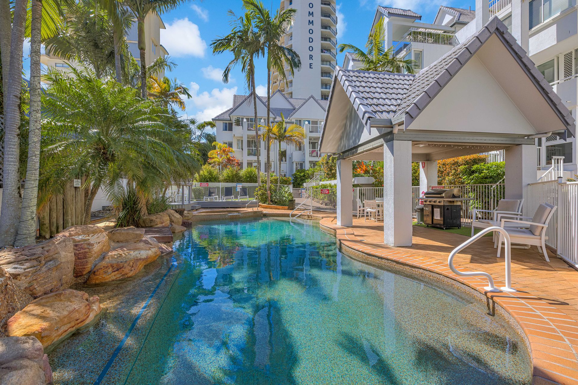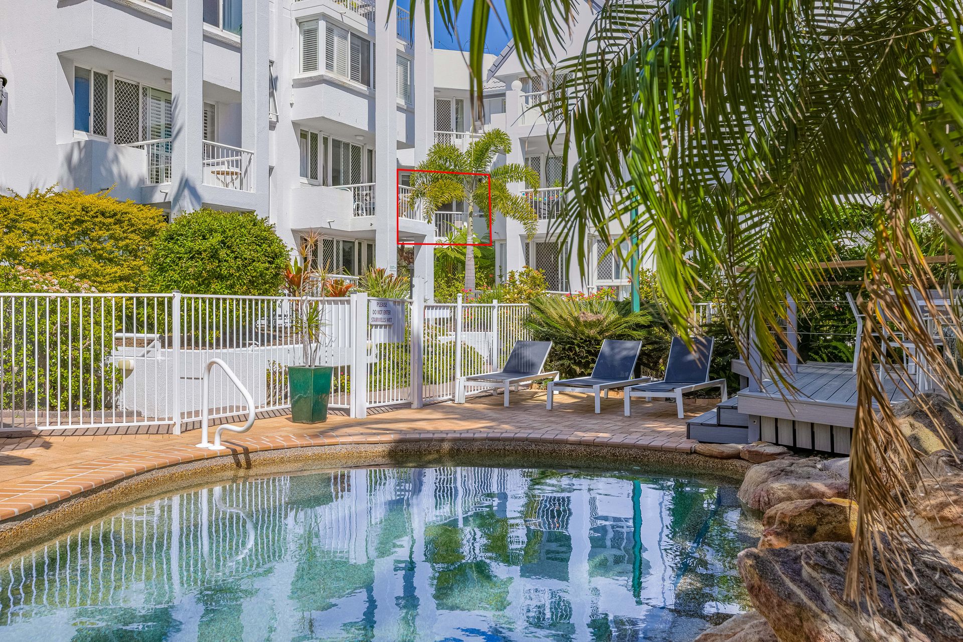 The apartment offers two bedrooms, two bathrooms and secure parking for one car, along with resort-style facilities including a large saltwater pool, heated spa and poolside BBQ area surrounded by lush tropical gardens.