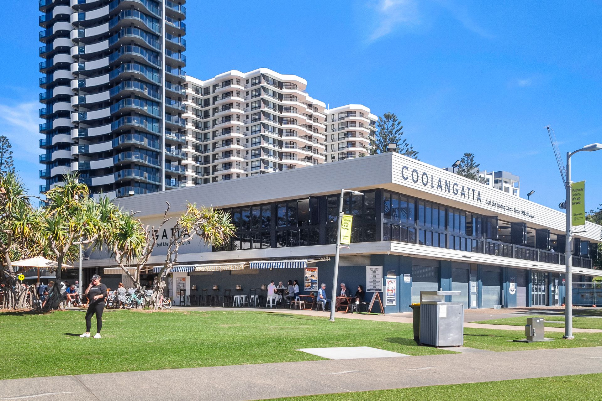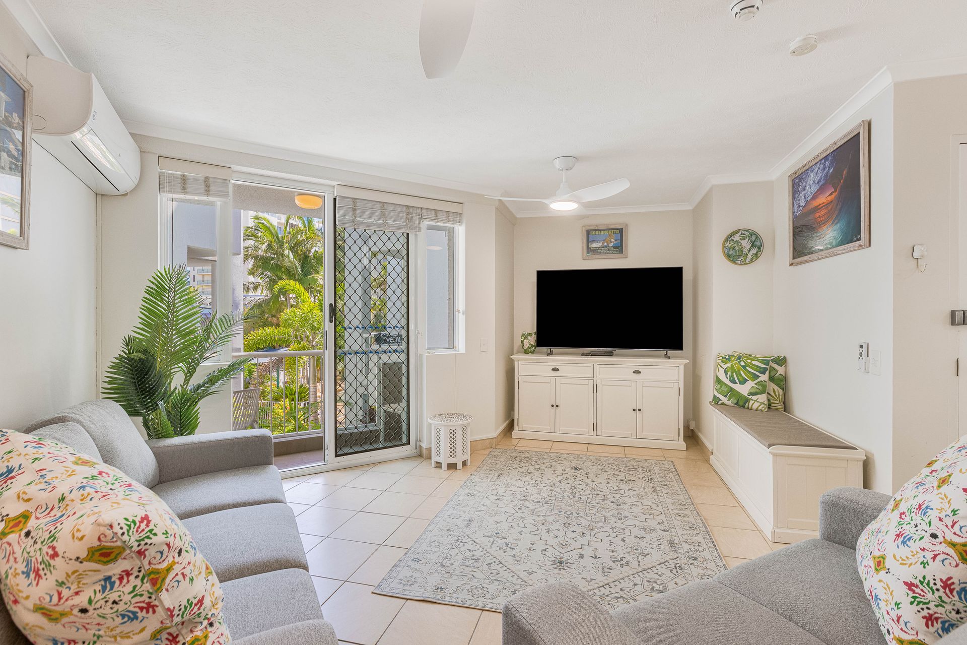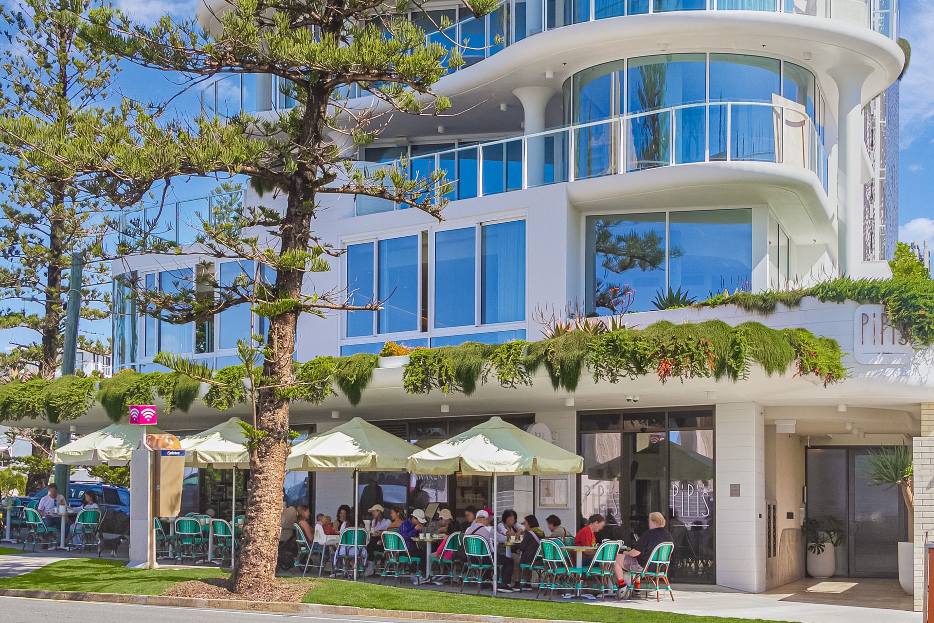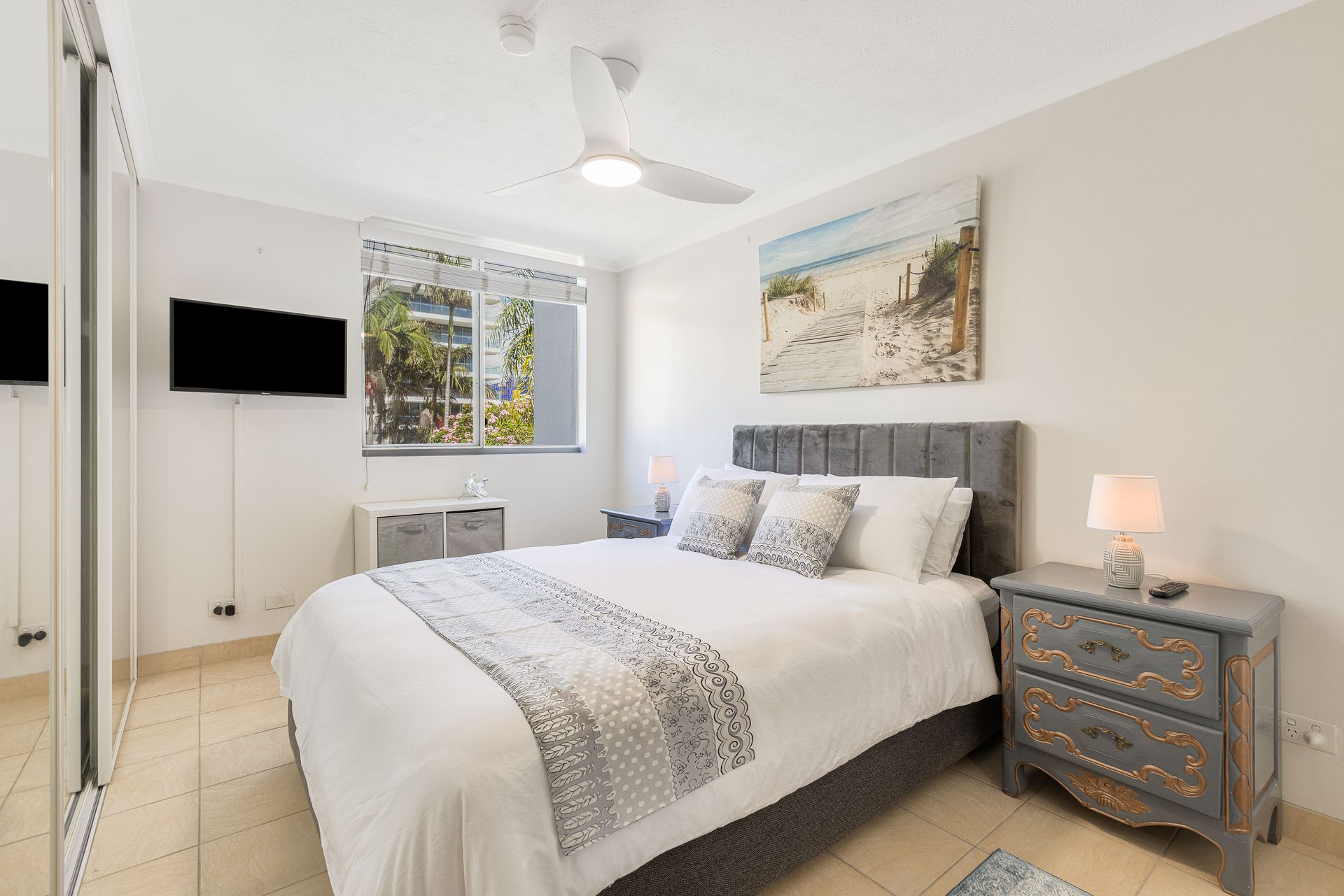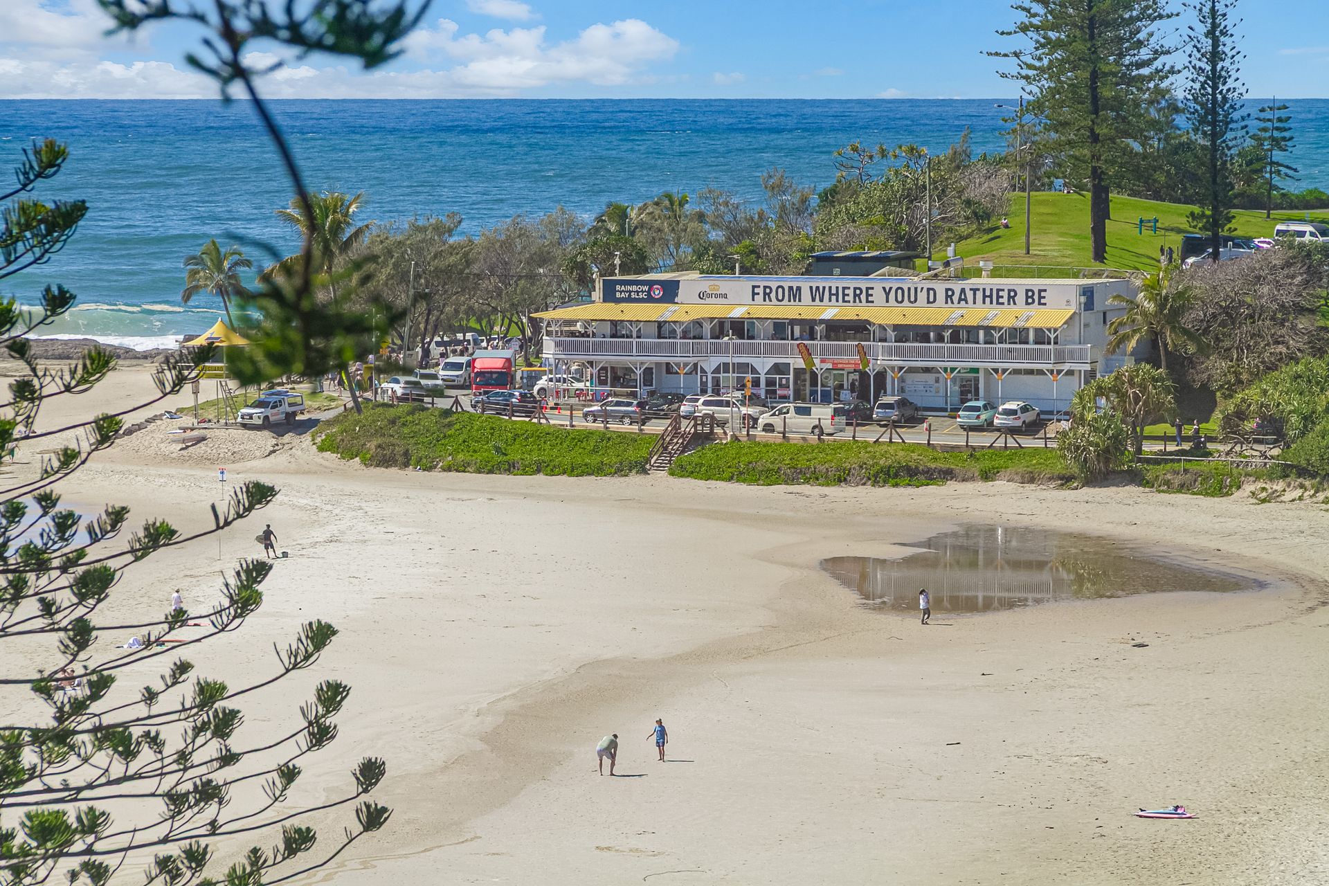 The Bay Apartment 15 enjoys a fantastic location in the heart of Rainbow Bay, Coolangatta, with a range of cafés, restaurants, and specialty stores nearby, and is only a short walk to Rainbow Bay Surf Club and the beach.