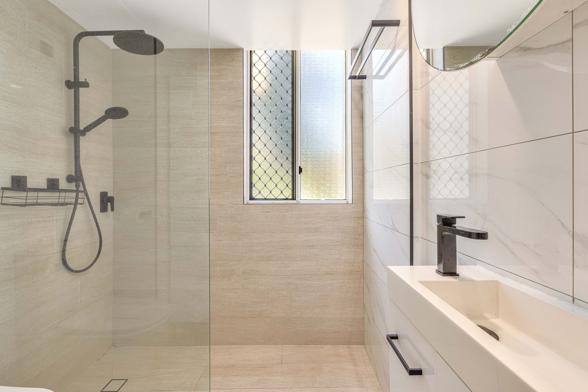 There is also a renovated main bathroom with a walk-in shower and toilet, as well as a laundry with washing machine and dryer.